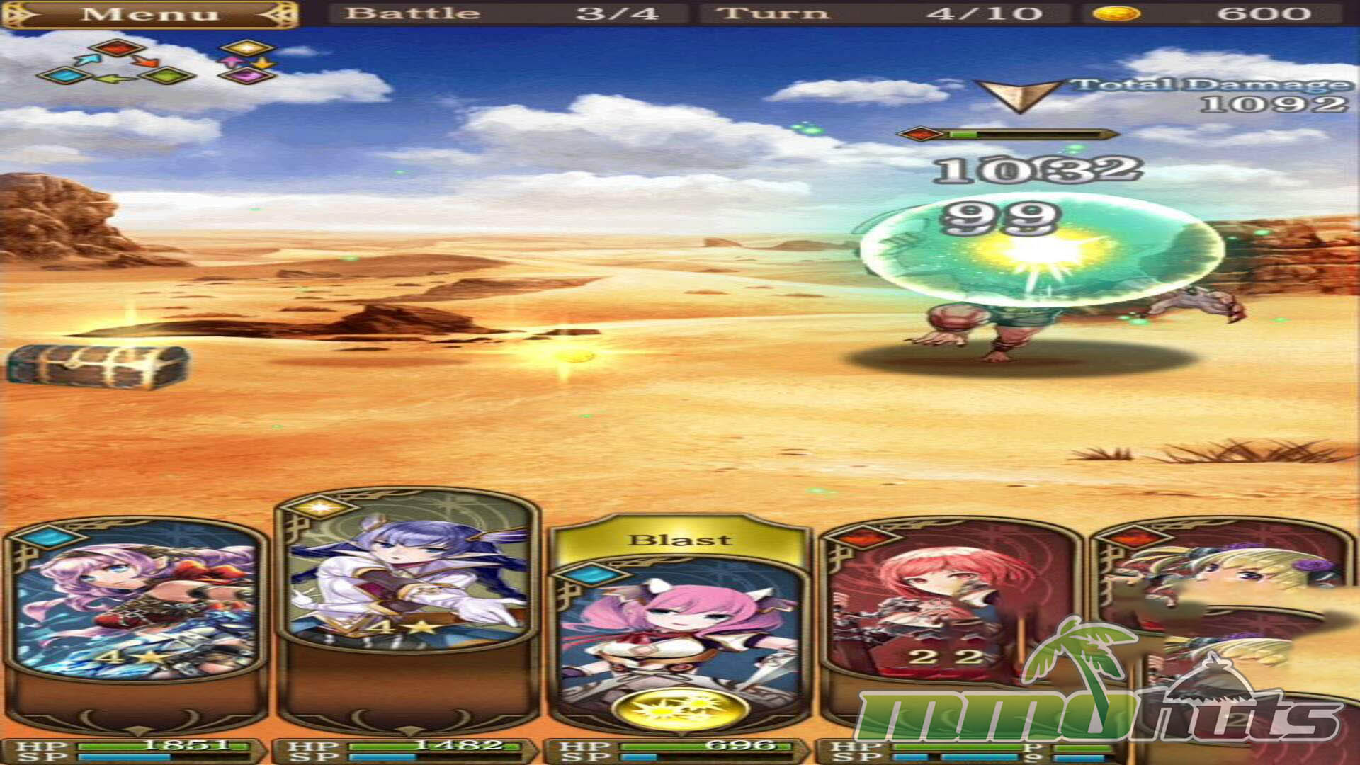 Grand Sphere’s combat is the clearest reason it stood out in a crowded mobile card RPG field. You bring up to four cards into a fight, and you can add a fifth ally by borrowing another player’s card, with a friend option available on a daily cadence. Instead of watching an auto-resolve, you make choices each round, reposition cards, select targets, and decide when to use skills.