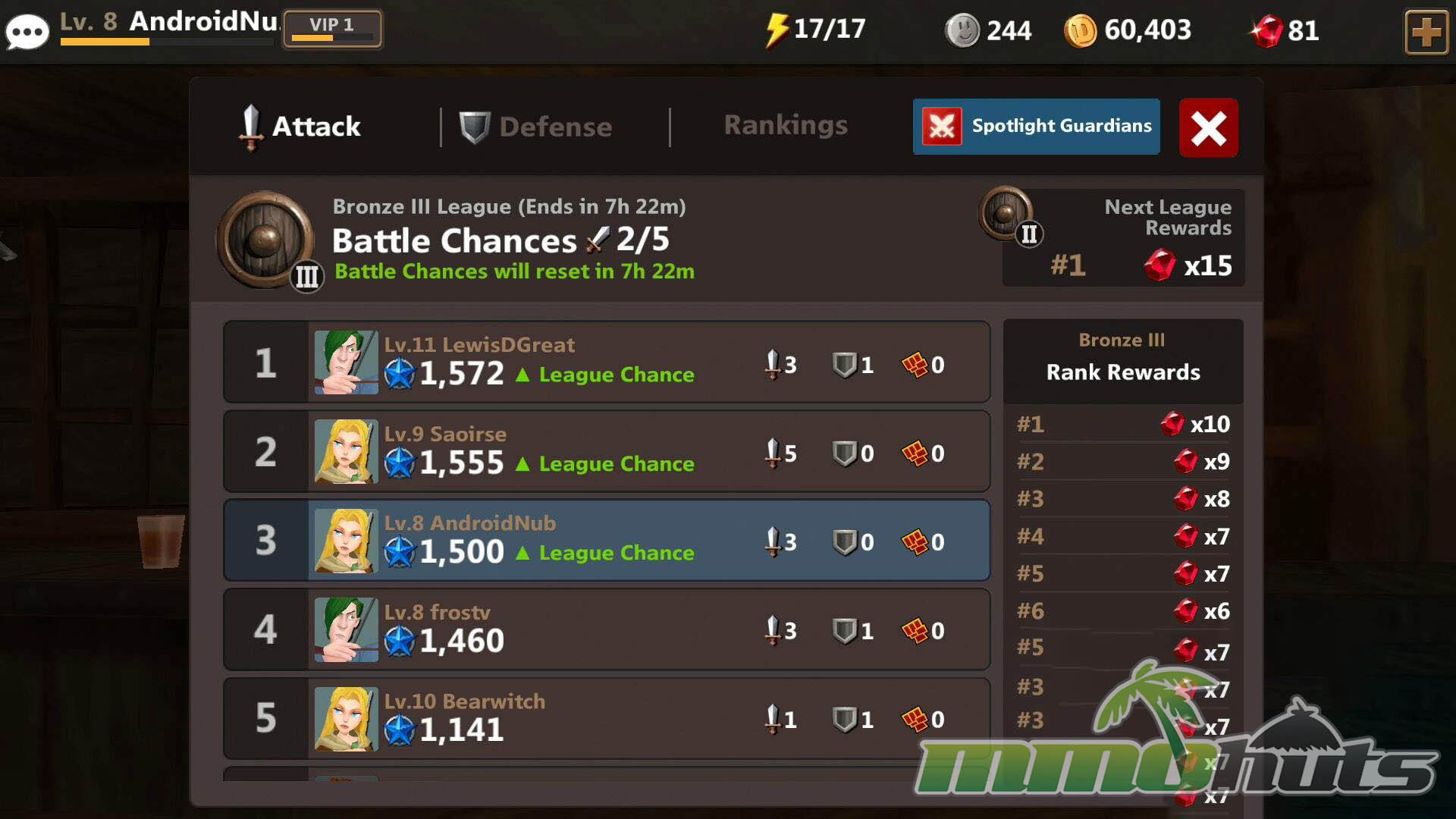 - Asynchronous PVP – Fight other players’ teams in AI-controlled defense battles and climb through league rankings.