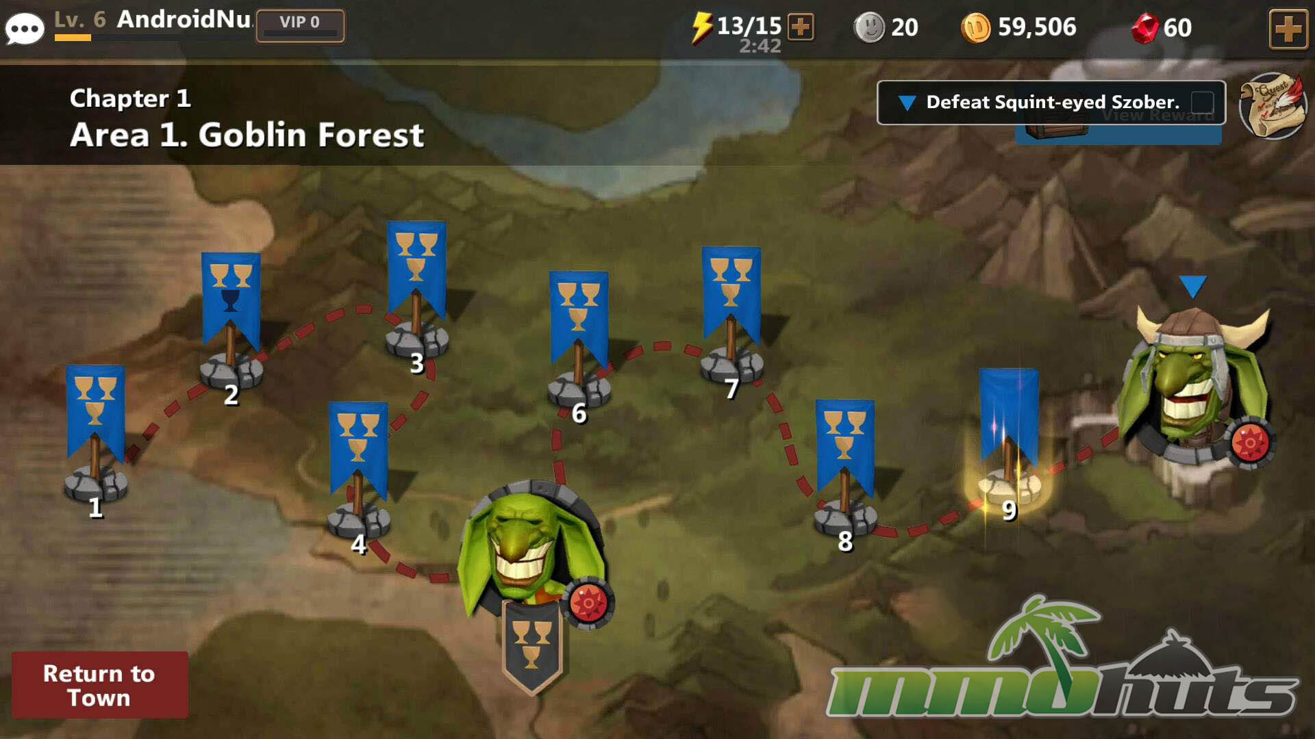 Like many mobile RPGs, the game is organized around a central town hub and a chain of instanced stages. In town you manage your roster, sort inventory, upgrade and forge, and accept quests that frame the next set of battles. Stages themselves are compact and repeatable, typically structured around multiple waves and a steady ramp in difficulty as you advance through a map.