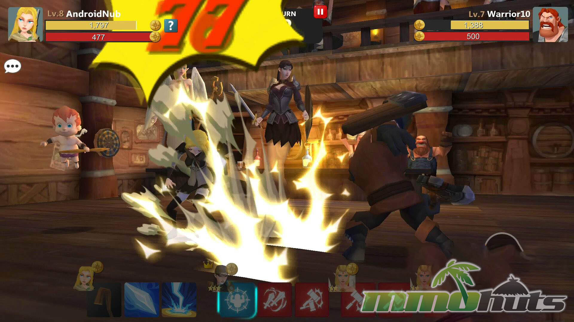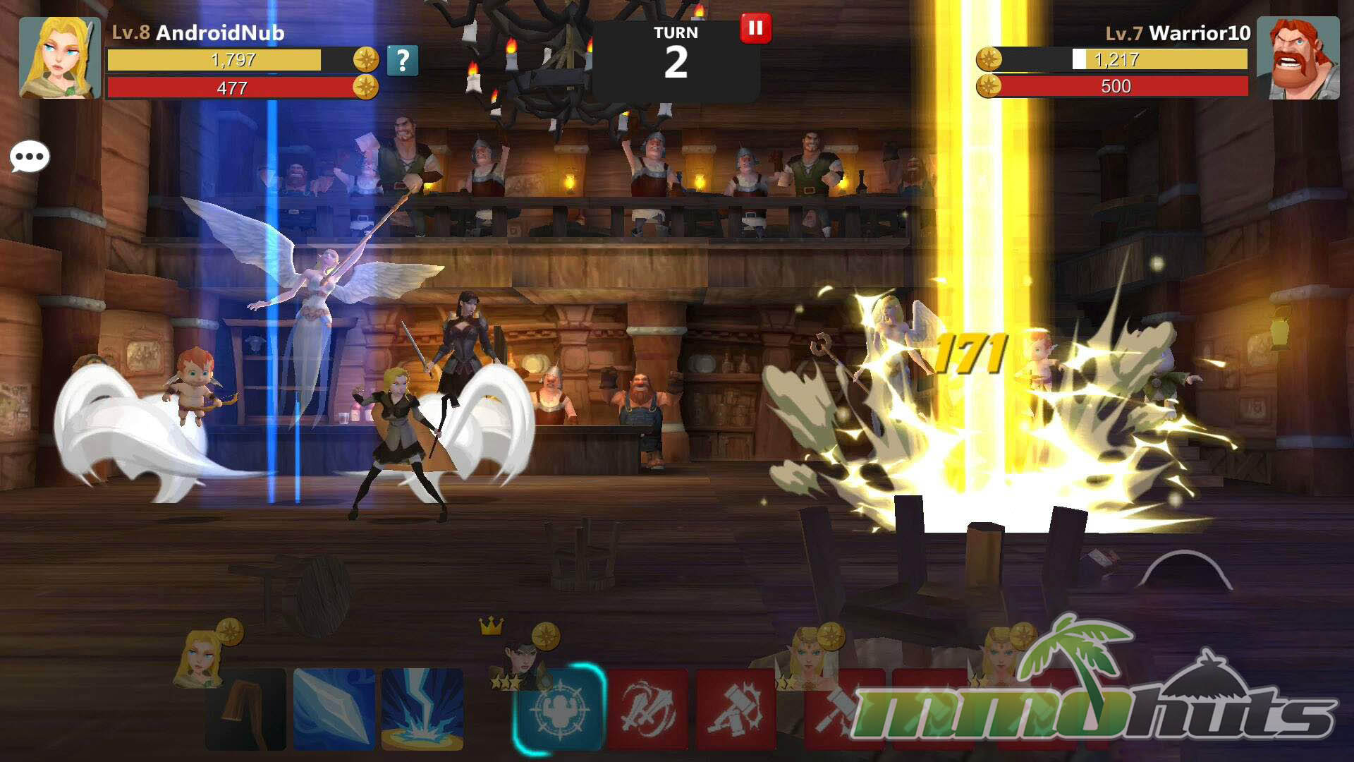 PvP is presented as tavern battles, and it is asynchronous in the sense that you fight AI-controlled defenses rather than live opponents. Still, you are not forced into automated play, you retain full control of your turns, which keeps the mode from feeling like a passive numbers check. Because only the player character can be attacked, PvP plays differently than PvE mob fights, and it naturally pushes you toward barrier-breaking and focused damage rather than relying purely on AoE.