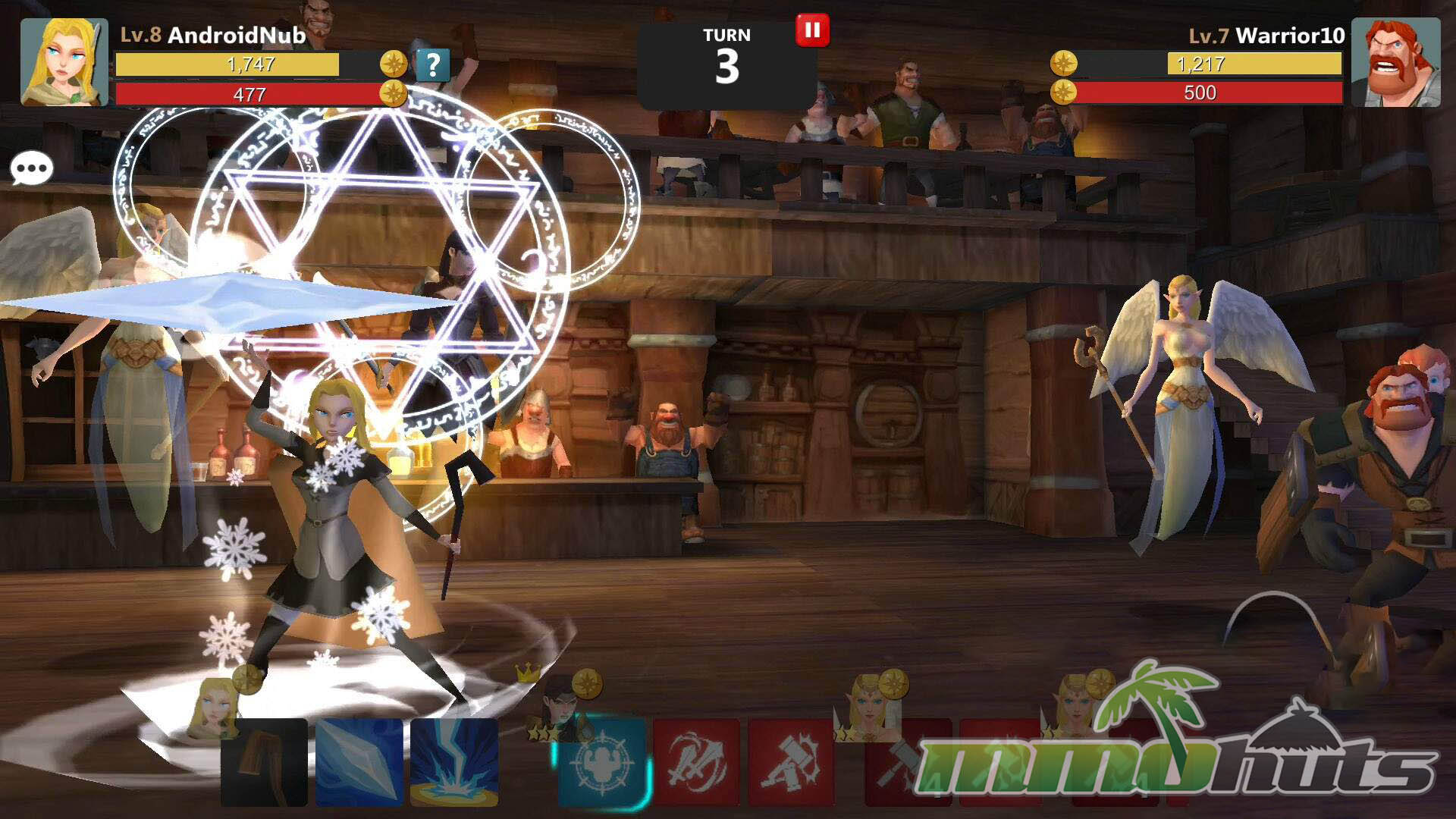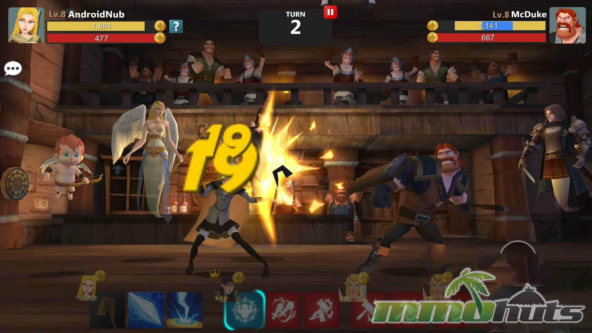 PvP is presented as tavern battles, and it is asynchronous in the sense that you fight AI-controlled defenses rather than live opponents. Still, you are not forced into automated play, you retain full control of your turns, which keeps the mode from feeling like a passive numbers check. Because only the player character can be attacked, PvP plays differently than PvE mob fights, and it naturally pushes you toward barrier-breaking and focused damage rather than relying purely on AoE.