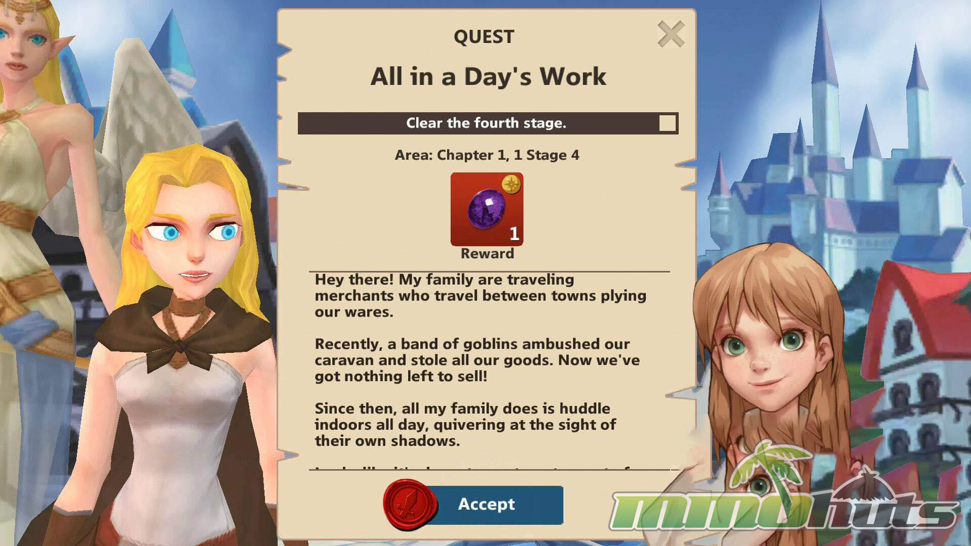 Like many mobile RPGs, the game is organized around a central town hub and a chain of instanced stages. In town you manage your roster, sort inventory, upgrade and forge, and accept quests that frame the next set of battles. Stages themselves are compact and repeatable, typically structured around multiple waves and a steady ramp in difficulty as you advance through a map.