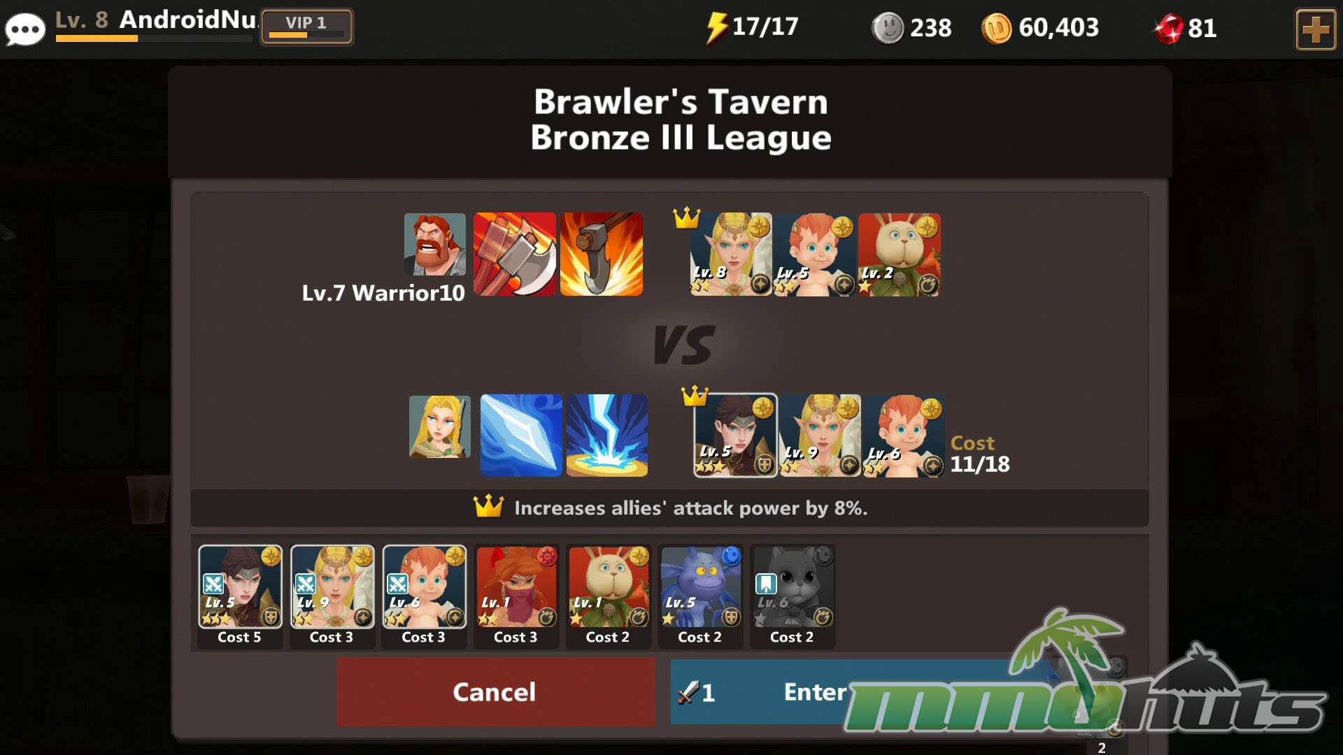 - Asynchronous PVP – Fight other players’ teams in AI-controlled defense battles and climb through league rankings.