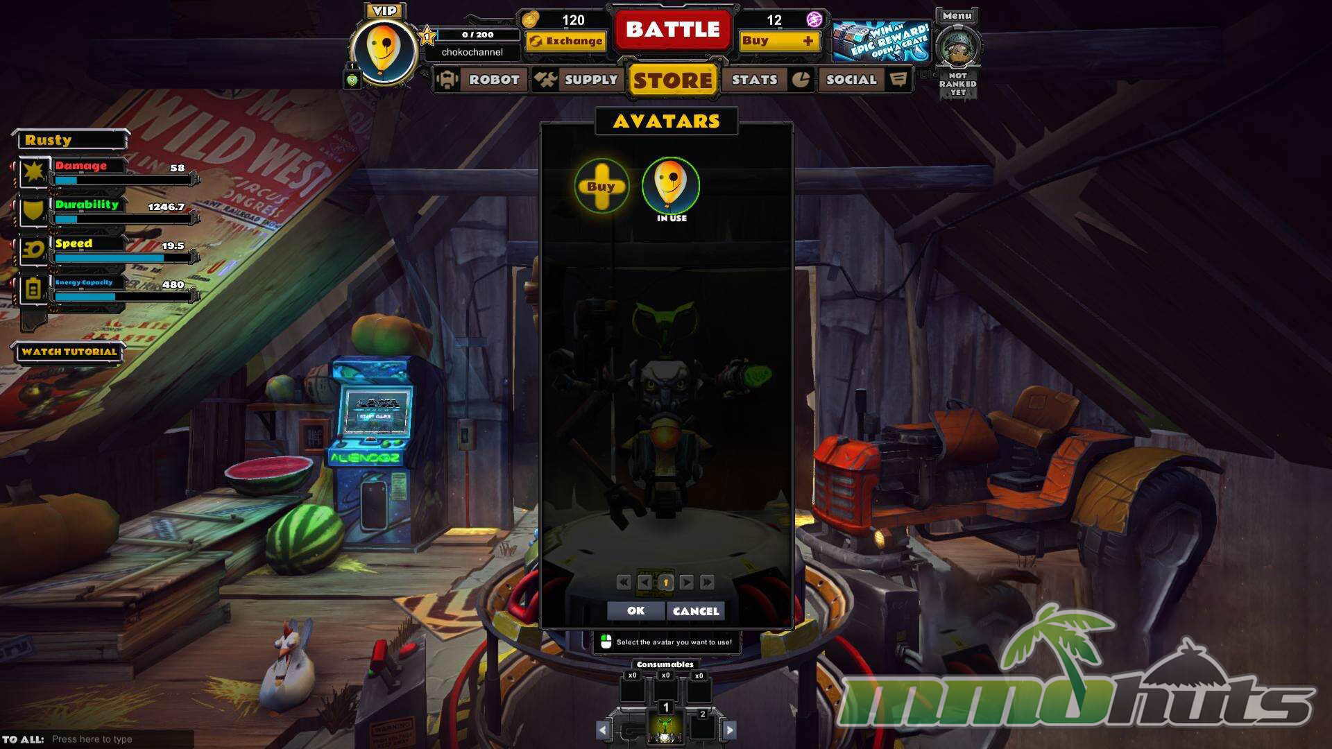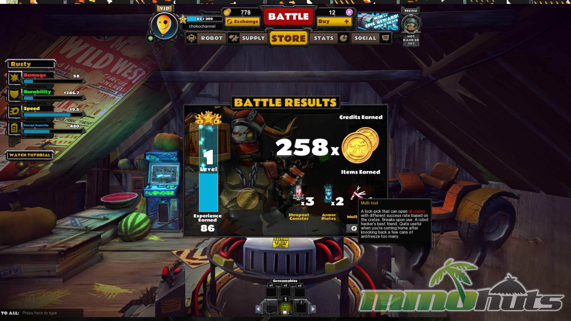 | Publisher: Masthead Studios, Ltd. Playerbase: Low Type: Third Person Shooter Release Date: August 4, 2014 Pros: +Deep robot building and loadout tinkering. +Colorful 3D presentation that fits the tone. +Fast, bite-sized matches. Cons: -Movement and handling can feel stiff. -Monetization can skew fairness. -Weapon balance is inconsistent. |