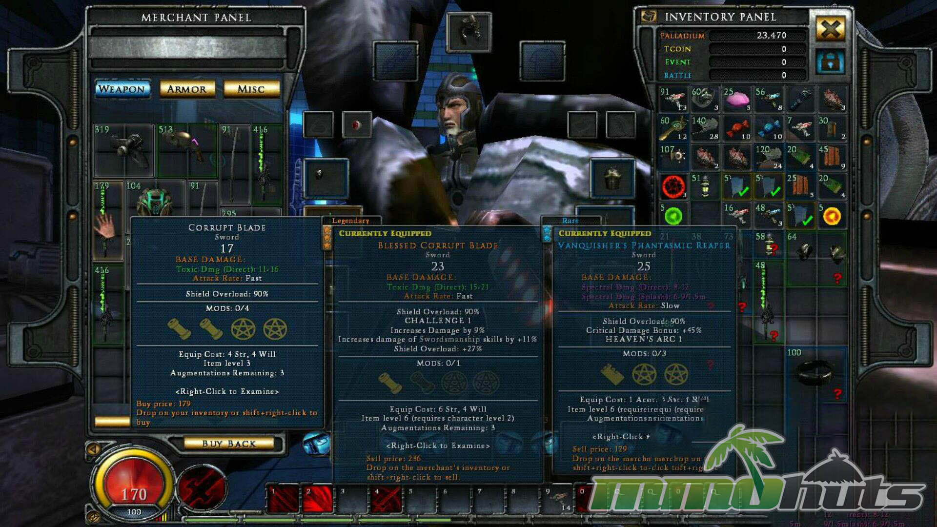 Hellgate understands the appeal of loot. Bosses and dense encounters regularly spill out gear, and the game pushes you into a satisfying loop of evaluating, replacing, and dismantling equipment. The inventory system uses a grid layout reminiscent of older ARPGs, where item size matters and packing your bag efficiently becomes its own small puzzle.