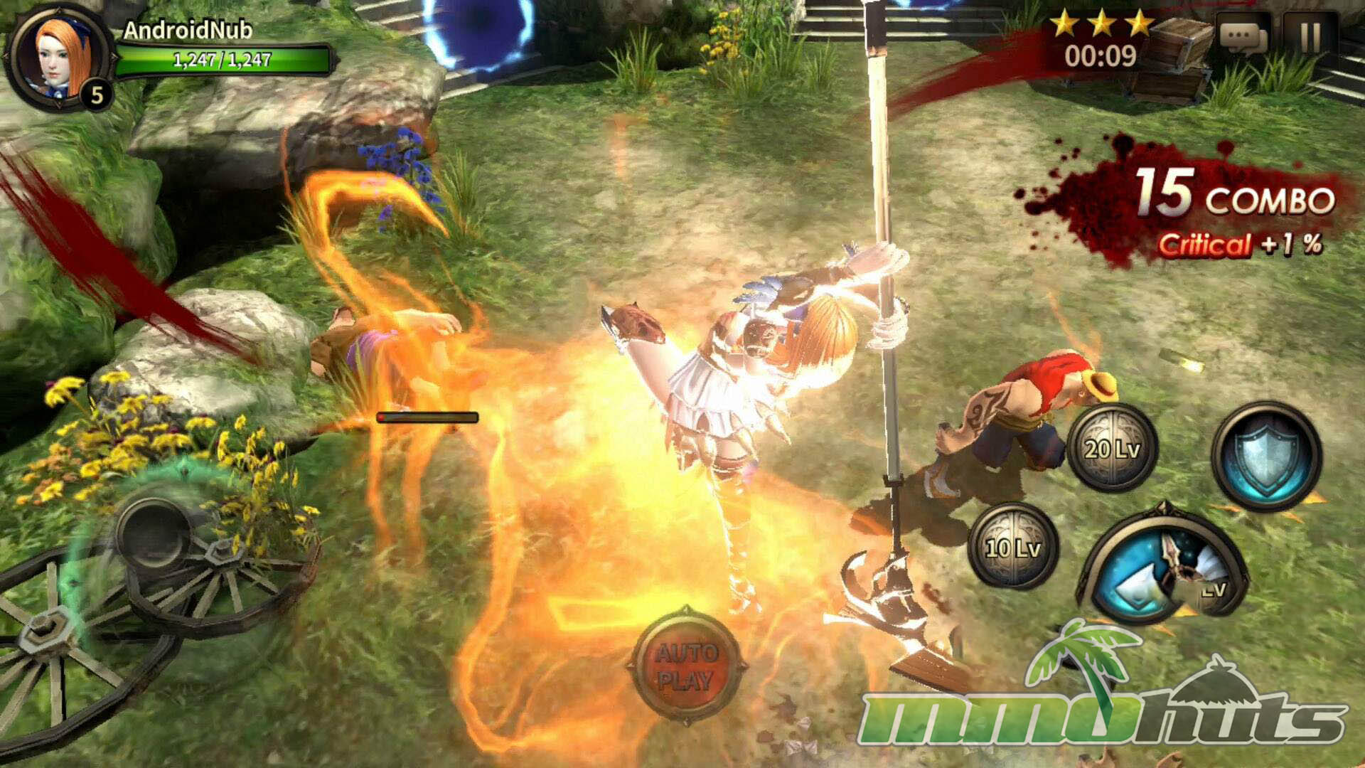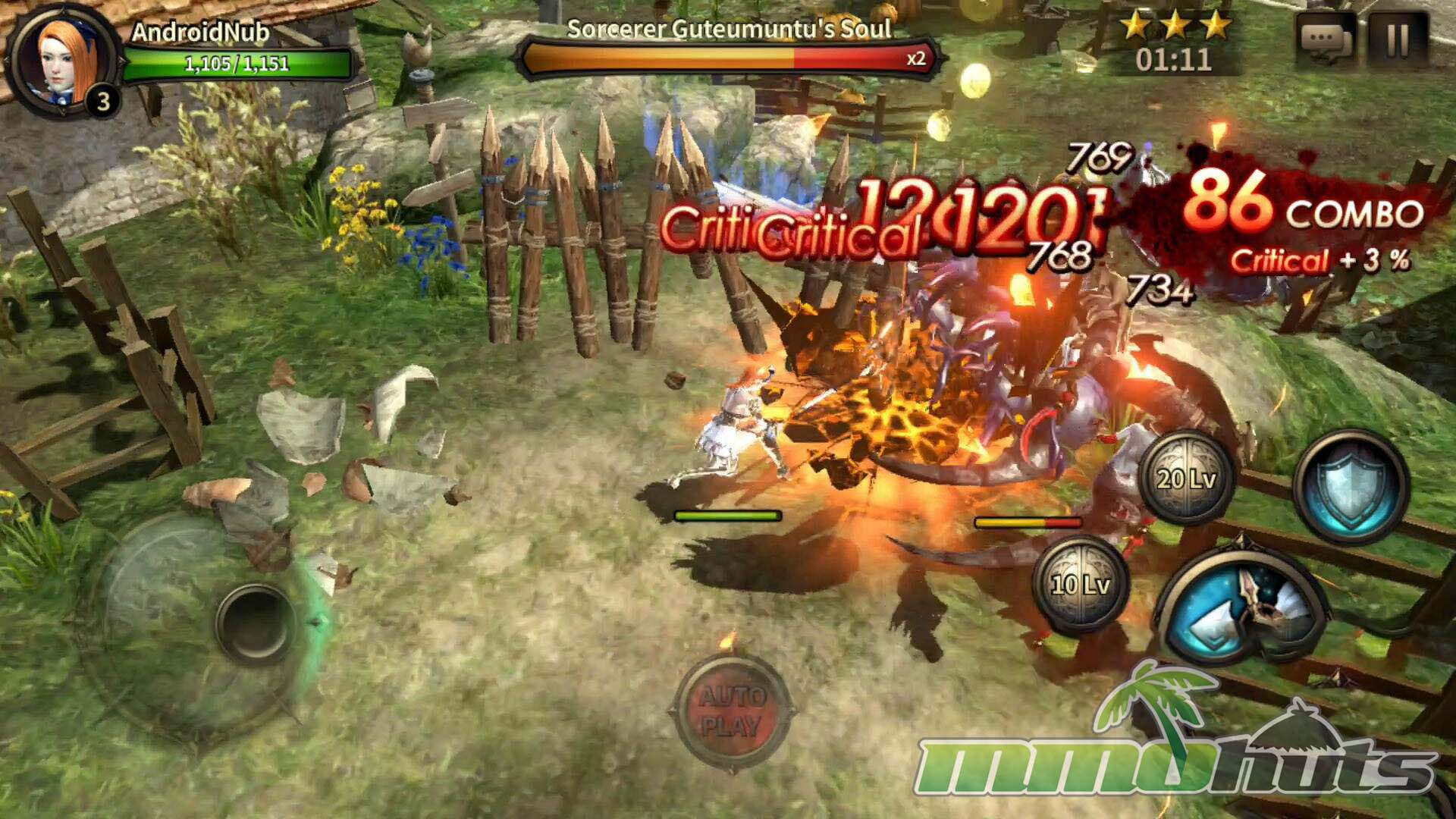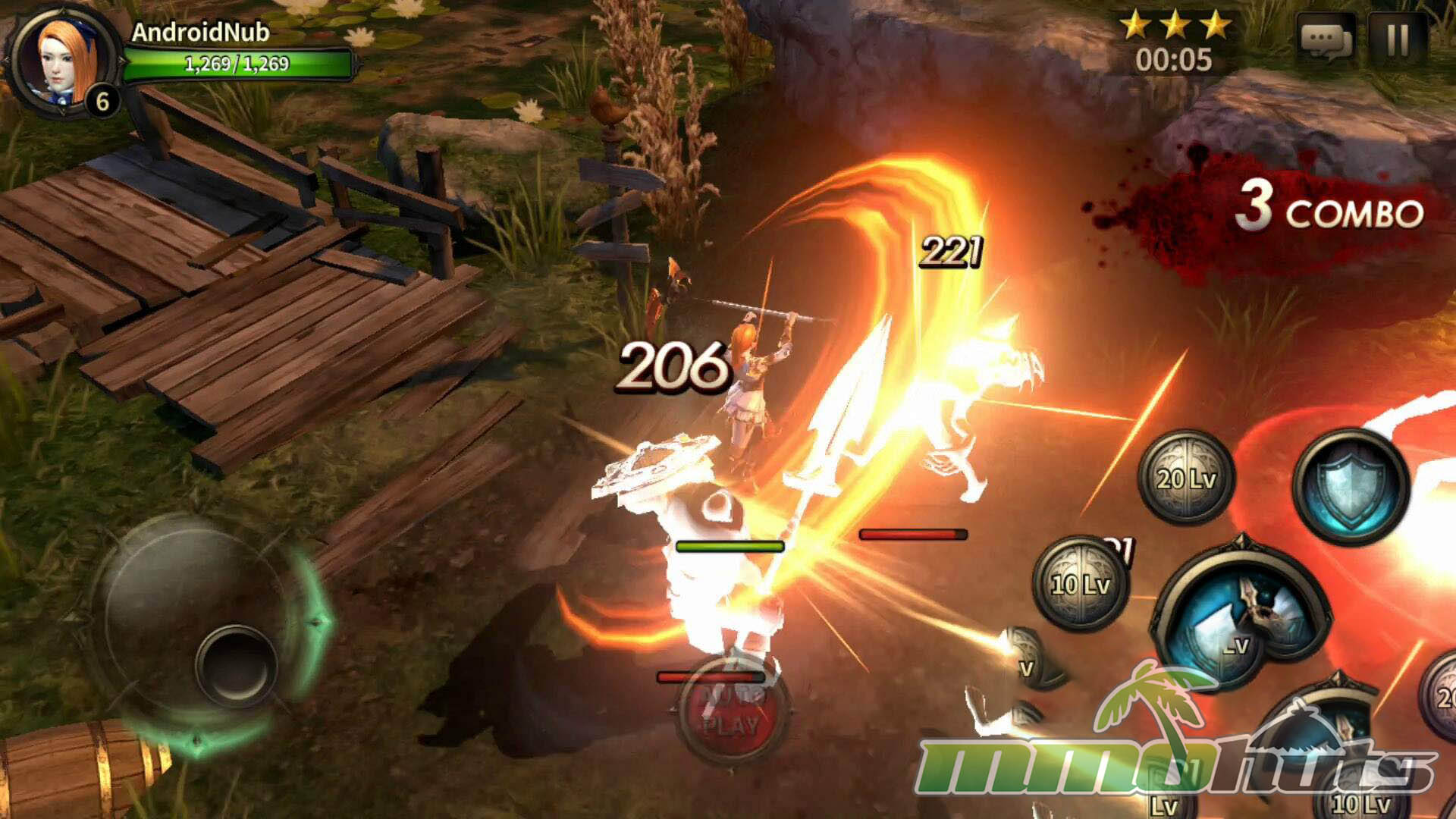 HIT’s moment-to-moment gameplay was built around a virtual joystick and a compact set of buttons for attacks, skills, and defense. Basic attacks could be tapped or held, skills were activated directly, and defense revolved around blocking and dodging. The key difference from many similar mobile RPGs was that blocking mattered. A block could fully negate incoming damage, and properly timed defense could trigger a counterattack, turning survival into an active skill check instead of a pure gear check.
