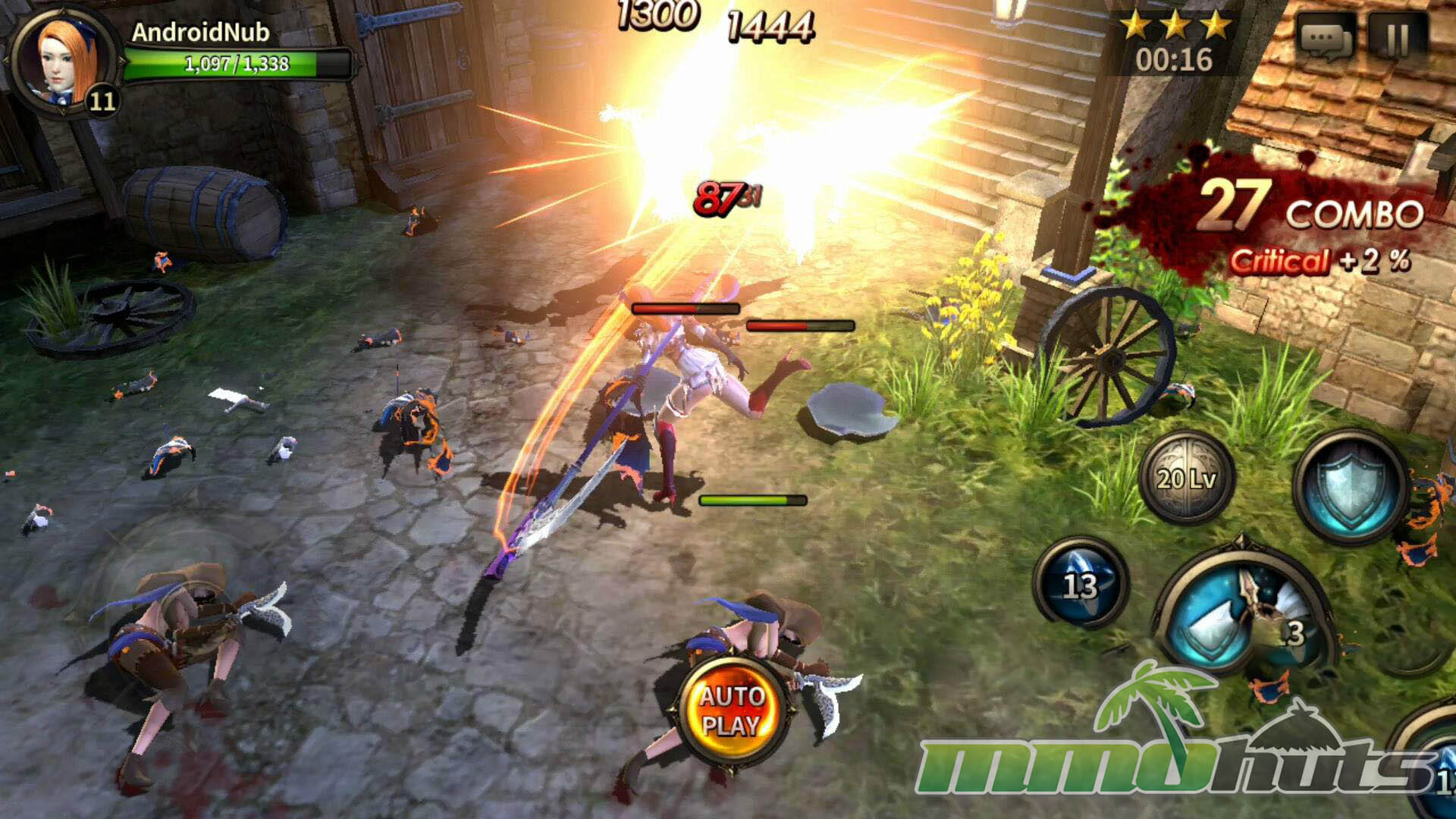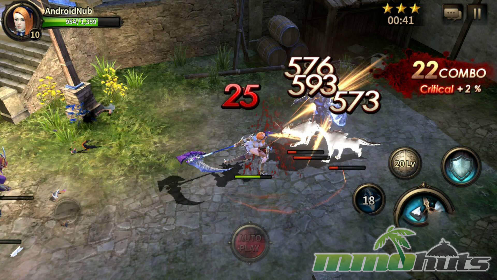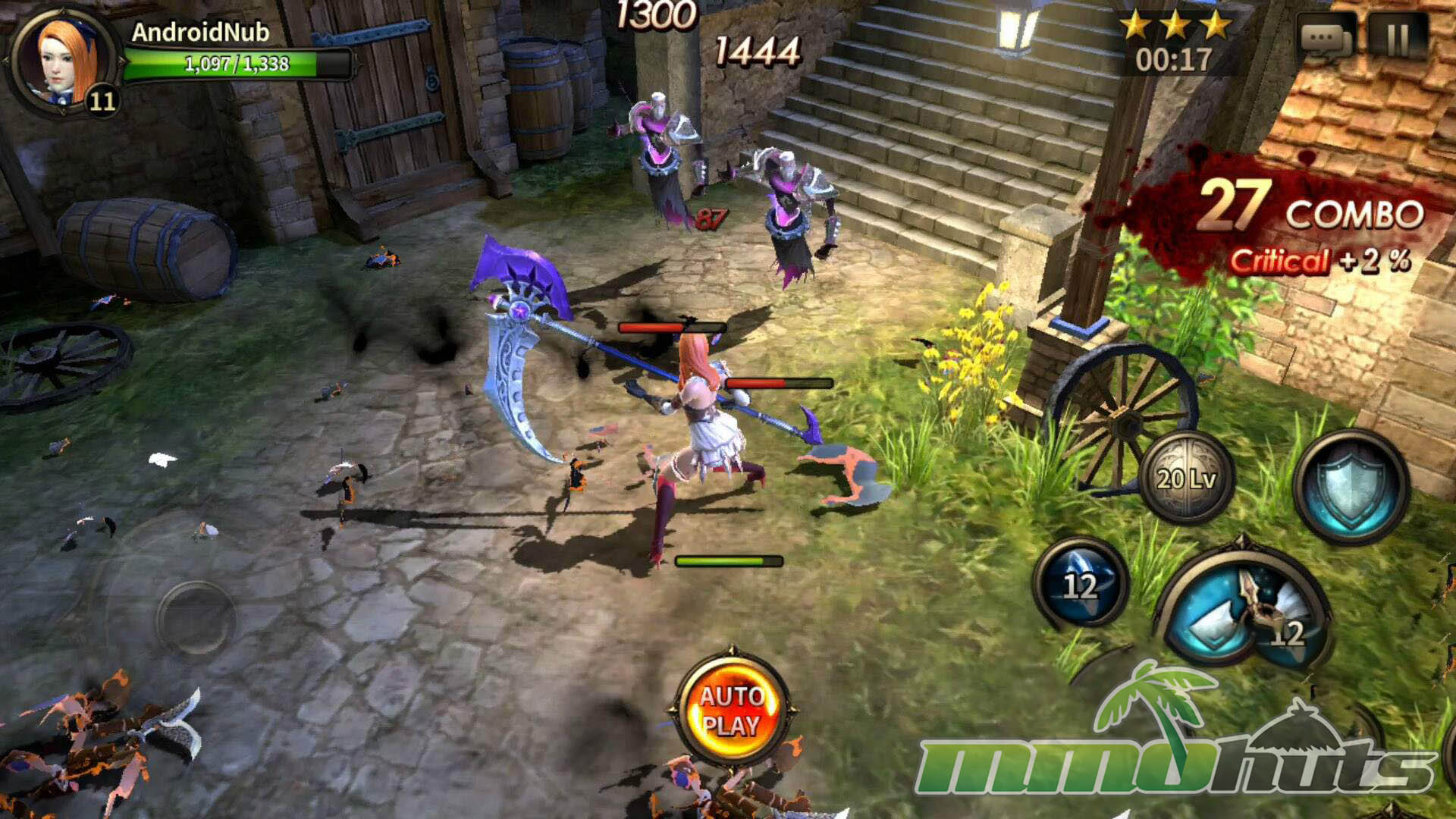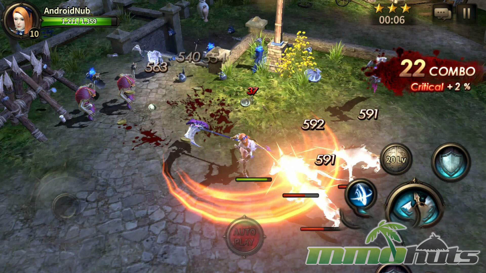 HIT’s moment-to-moment gameplay was built around a virtual joystick and a compact set of buttons for attacks, skills, and defense. Basic attacks could be tapped or held, skills were activated directly, and defense revolved around blocking and dodging. The key difference from many similar mobile RPGs was that blocking mattered. A block could fully negate incoming damage, and properly timed defense could trigger a counterattack, turning survival into an active skill check instead of a pure gear check.