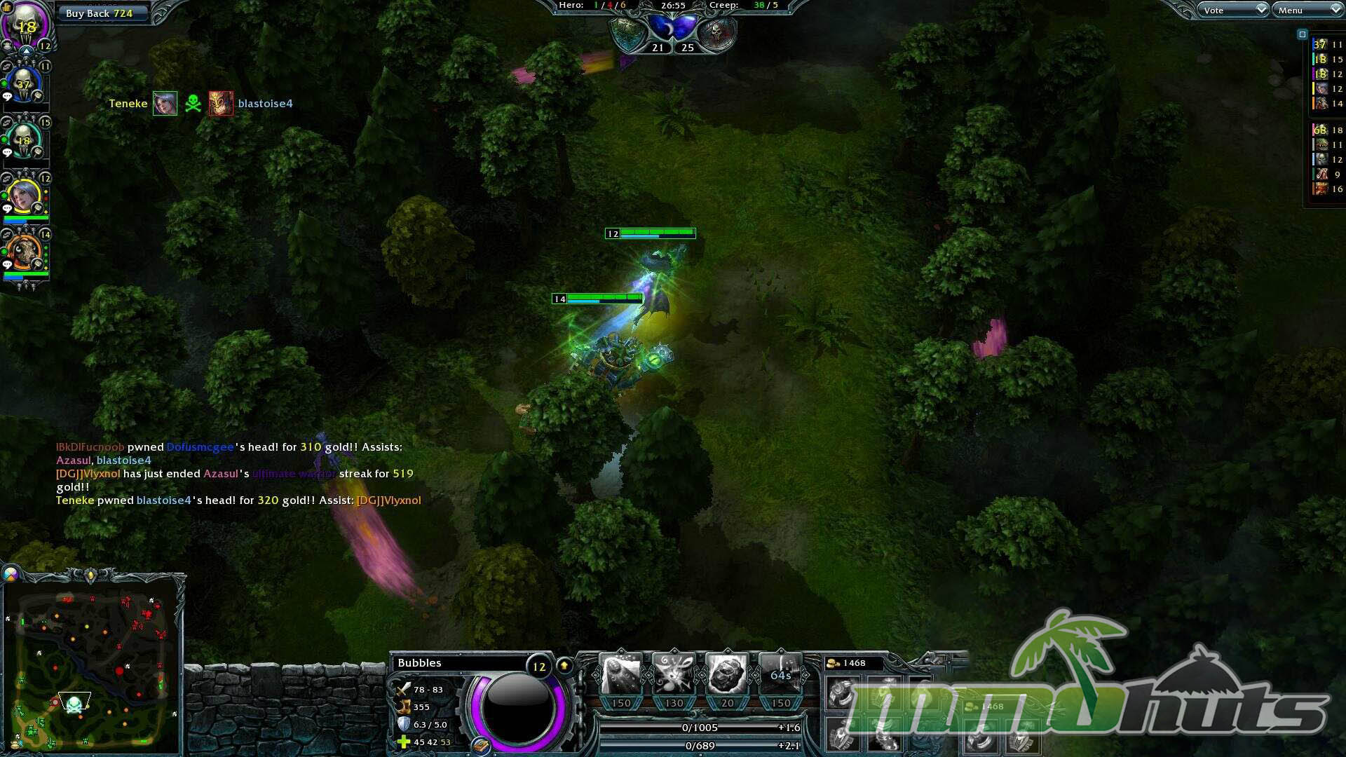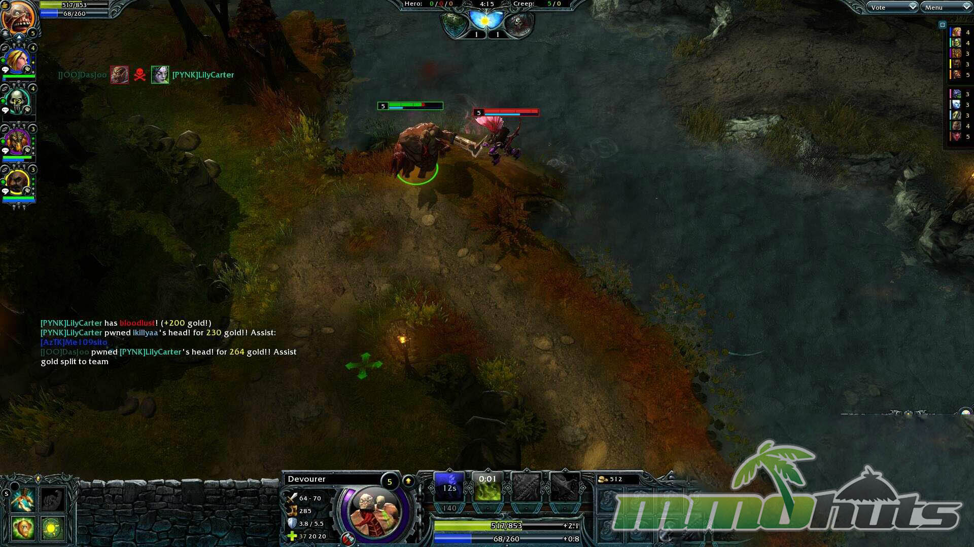 HoN also leans into spectacle with its killstreak system, extending up to extremely rare high streaks and rewarding strong performances with extra gold at match end that can be spent on shop items. Combined with extensive tracking of GPM, APM, KDA, and spree statistics, it gives players a long-term sense of progression even when the match outcomes swing.