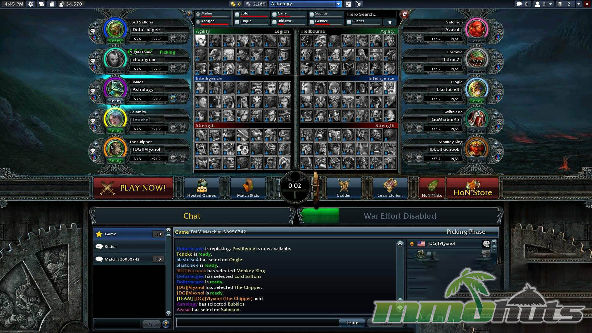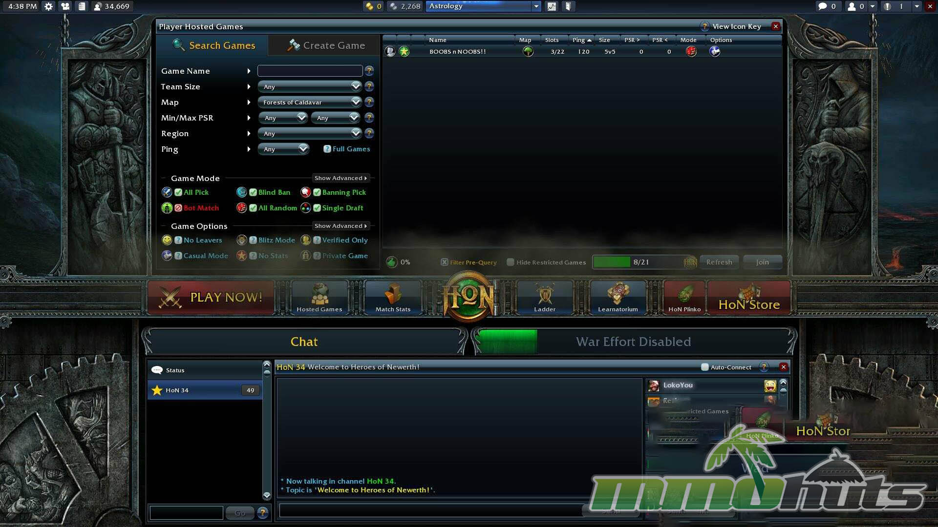 Mode variety is one of HoN’s long-running strengths. Different lobbies revolve around how teams draft, counter-pick, and ban heroes, which changes the tone of a match even when the map stays the same. If you prefer faster, constant brawling, Midwars effectively fills the ARAM niche with a single-lane focus. For smaller team fights and shorter macro play, Grimm’s Crossing provides a 3v3 layout with two lanes, plus another two-lane 5v5 option for a different take on the standard formula.
