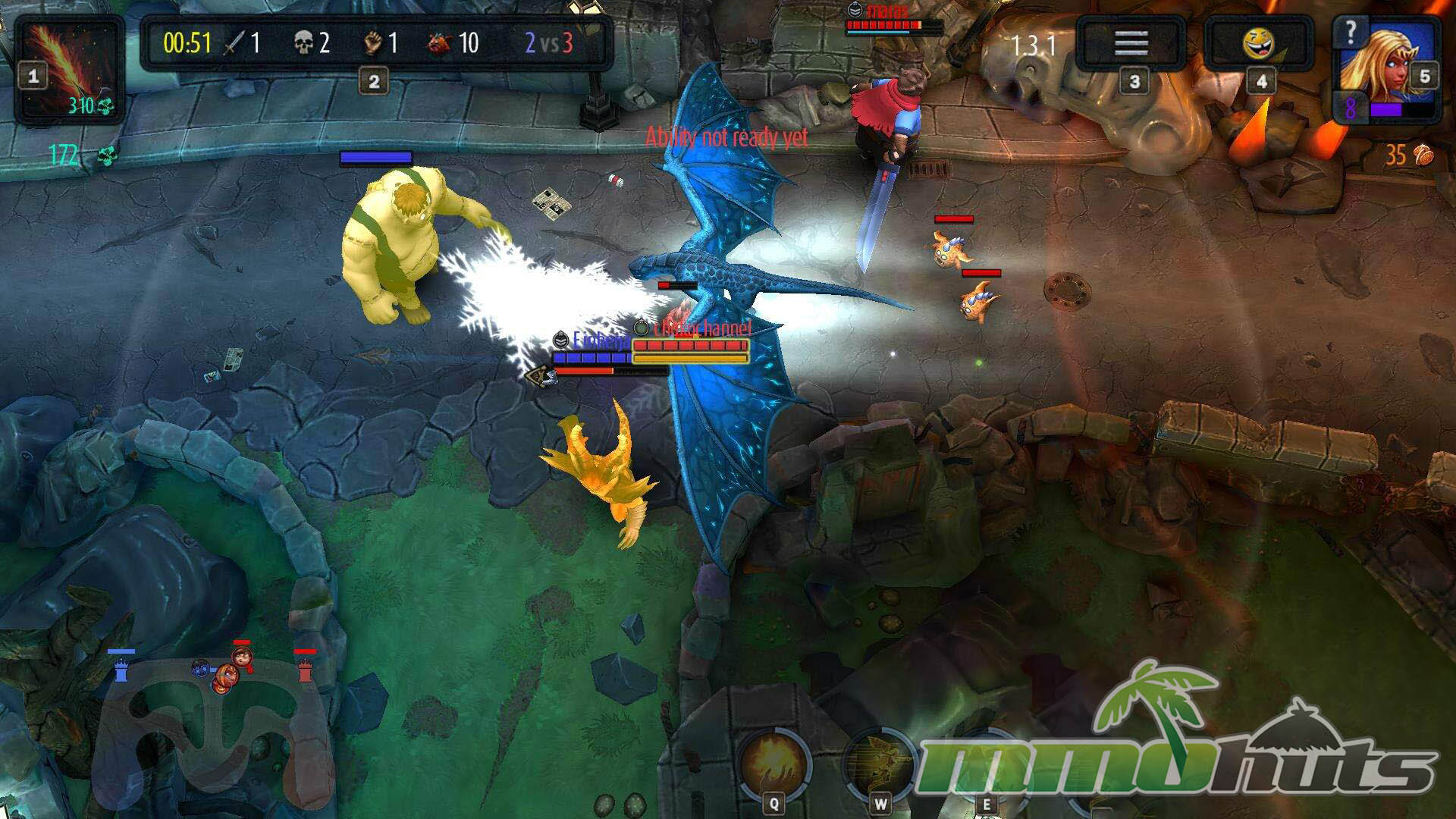 | Publisher: MobileBits Playerbase: Low Type: Arcade MOBA Platforms: PC, Android, iOS Release Date: March 25, 2015 Pros: +Free-to-play. +Cross-platform. +Controller support. Cons: -Instability issues like crashes, lag spikes, and assorted bugs. -Very little onboarding, with minimal tutorials or helpful tooltips. -Not much variety in content over time. |
