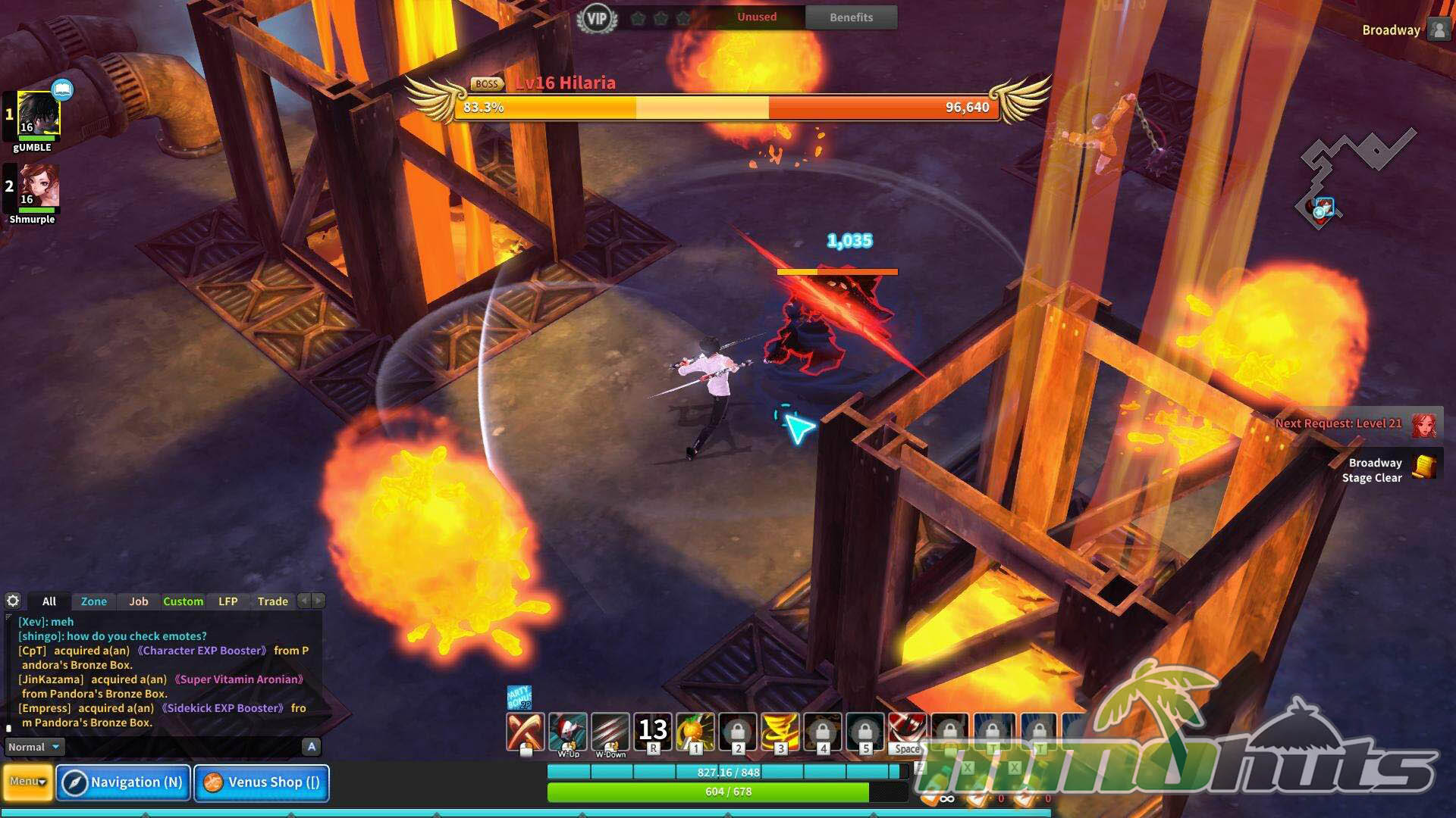 HeroWarz uses a hub structure. You operate out of a central city, pick missions, then load into compact stages that function like corridors and rooms packed with enemies. Each map tends to feature a small set of monster types, which keeps readability high but can also make runs feel similar over time. Clearing enough waves triggers the boss, and finishing the stage leads into a reward sequence.