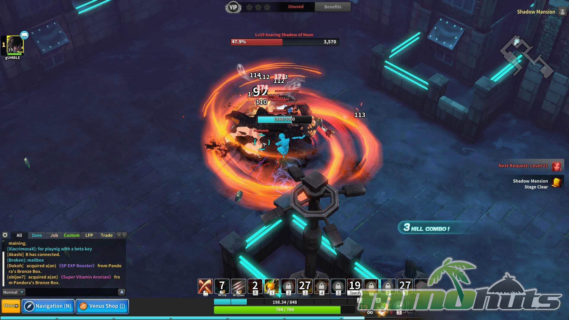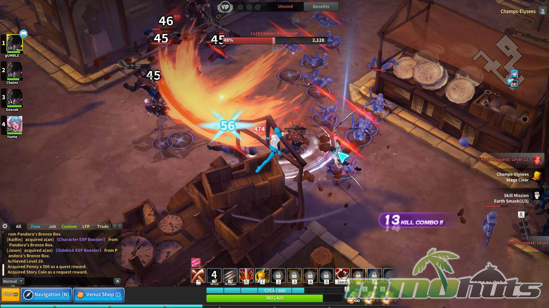 HeroWarz uses a hub structure. You operate out of a central city, pick missions, then load into compact stages that function like corridors and rooms packed with enemies. Each map tends to feature a small set of monster types, which keeps readability high but can also make runs feel similar over time. Clearing enough waves triggers the boss, and finishing the stage leads into a reward sequence.