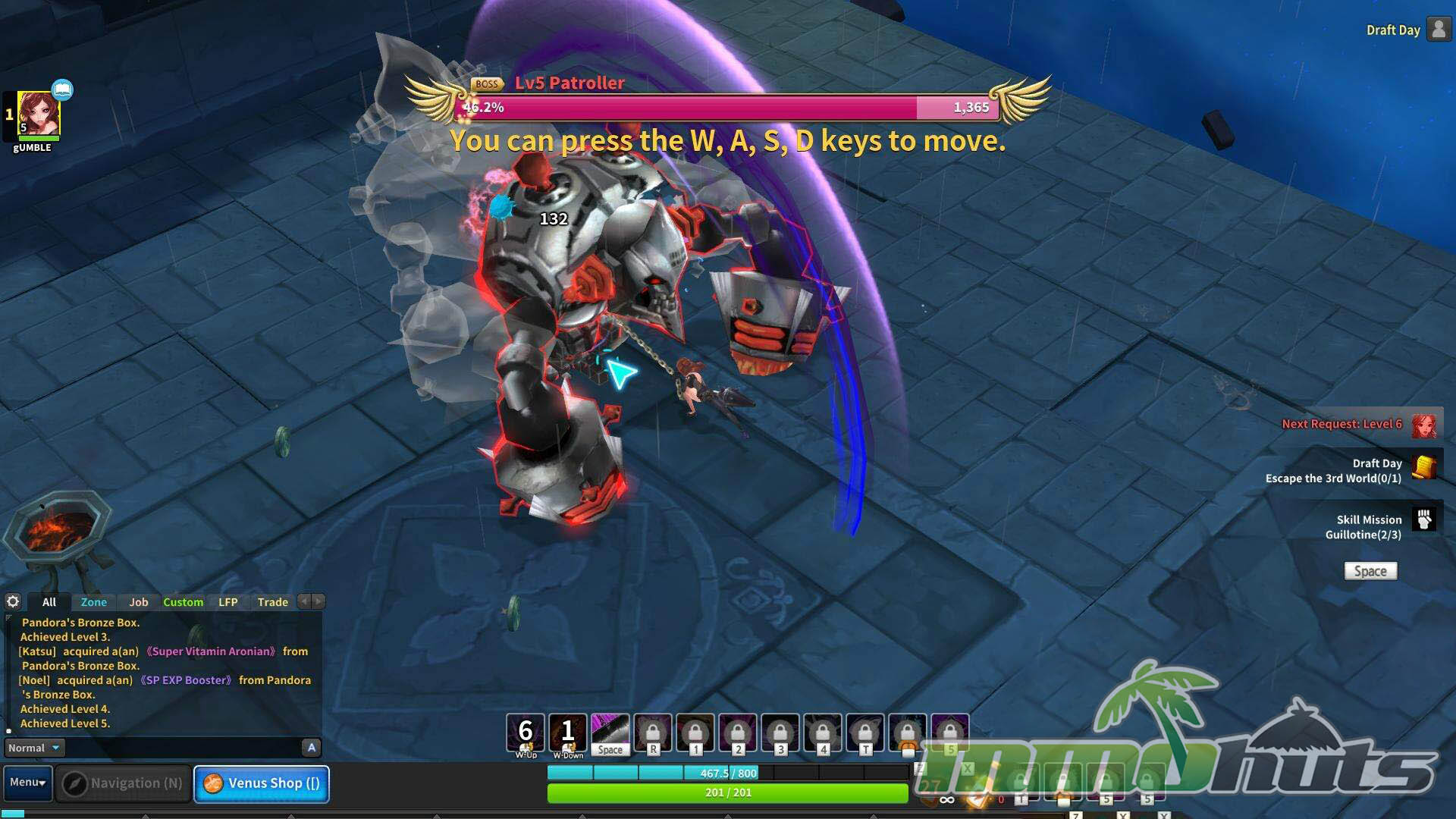 HeroWarz supports two main movement styles: keyboard movement with WASD, or mouse-driven movement. Both work, but mouse movement tends to feel smoother in hectic fights, particularly when you are constantly adjusting positioning to maintain combos or avoid boss swings. Regardless of movement choice, you will still be using the keyboard for skills, so it is not a one-hand action game.