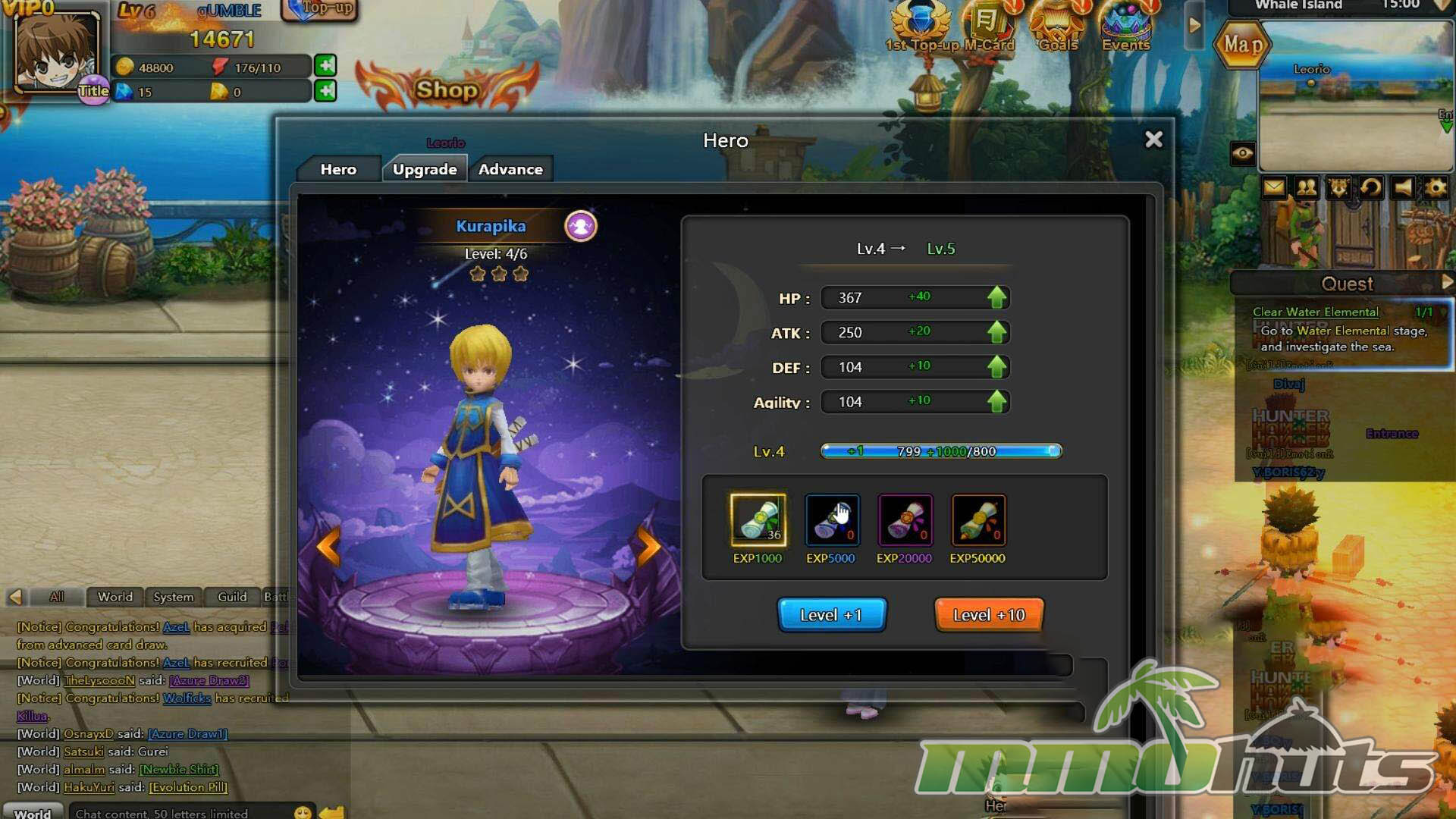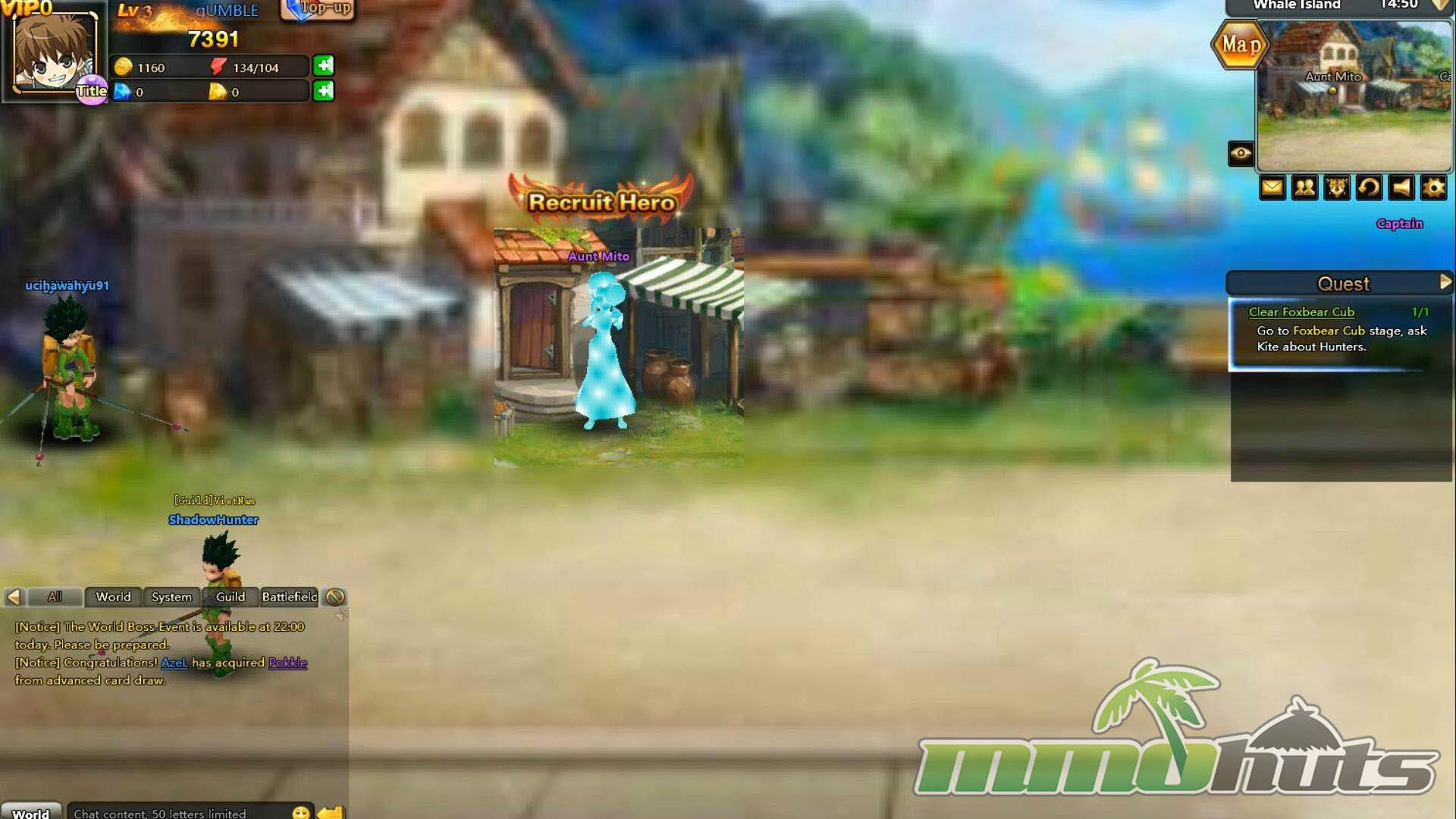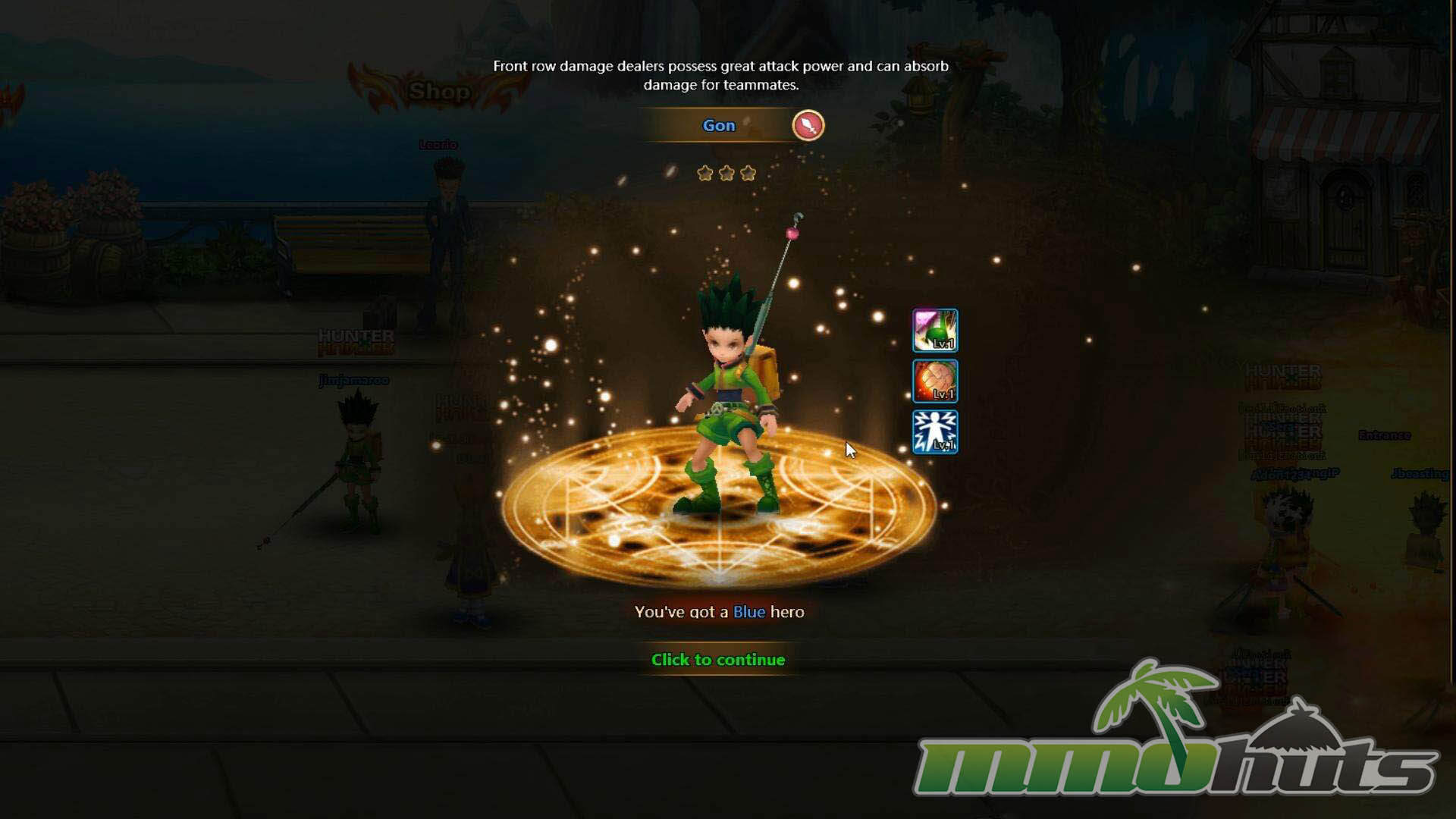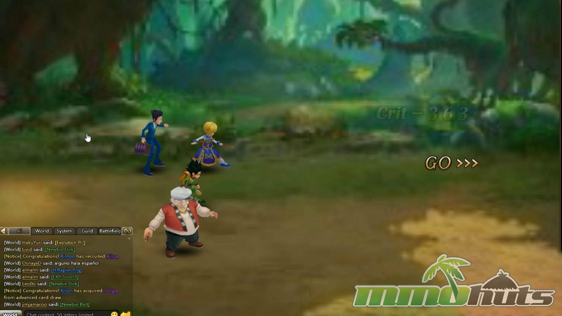 Hunter Online uses a familiar stage-by-stage browser RPG structure and places it inside the Hunter X Hunter universe. You move through the story with Gon and company as quests funnel you from one instanced fight to the next, unlocking additional chapters and systems as you go. Rather than roaming a large shared world, most playtime revolves around assembling a squad, boosting their stats, and clearing missions efficiently, making it feel more like a mission-hub RPG than a classic MMO with explorable zones.