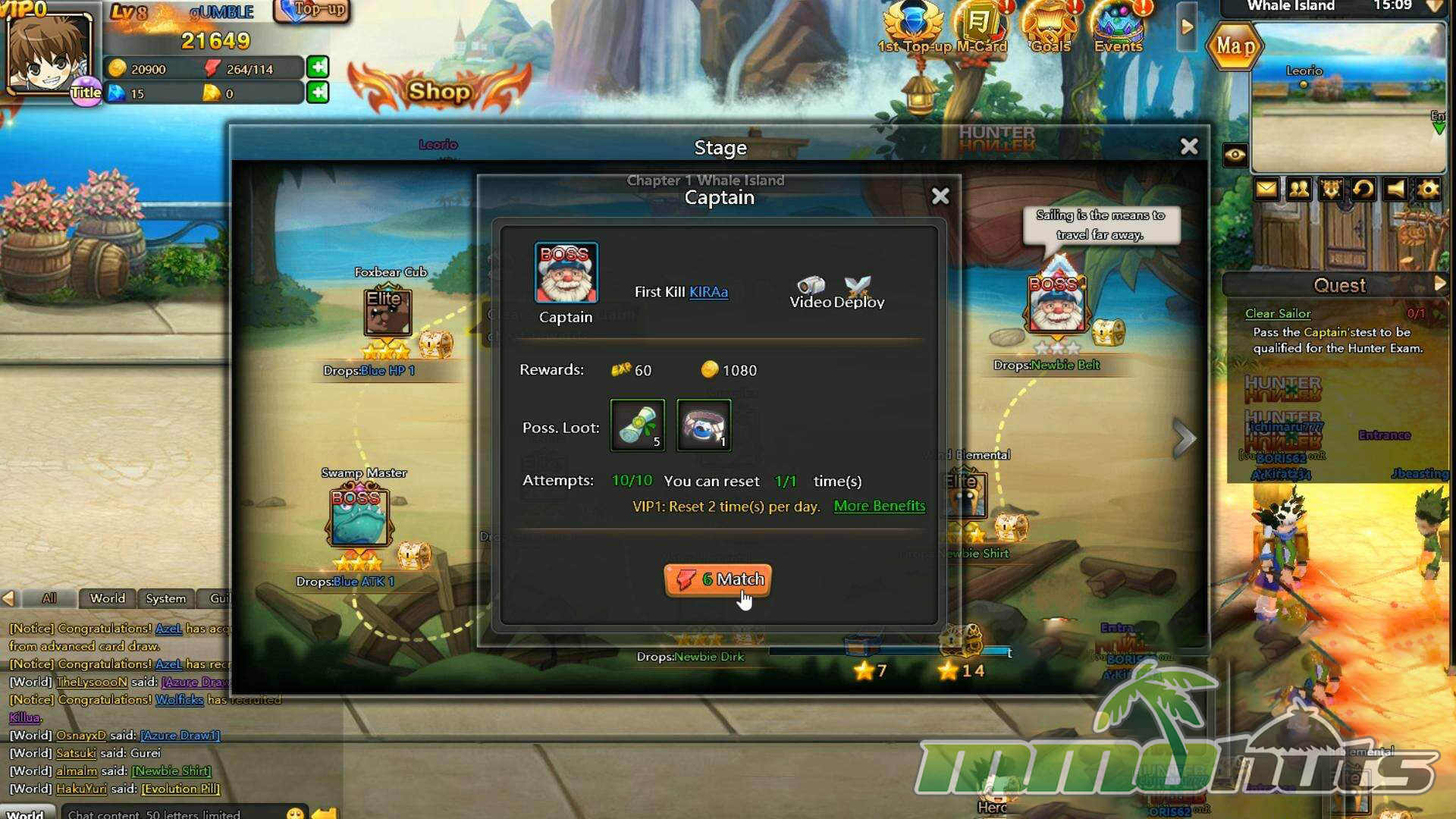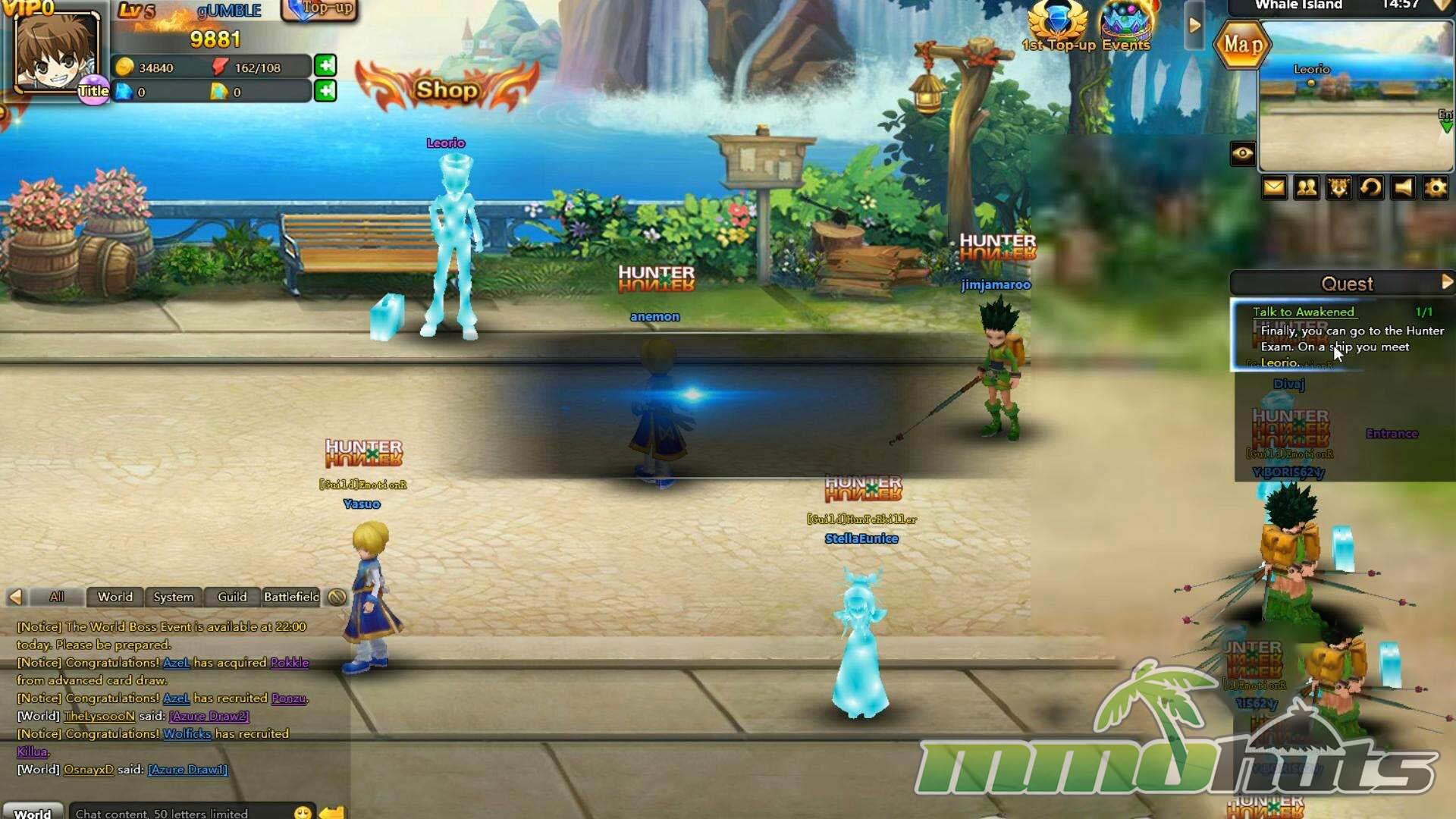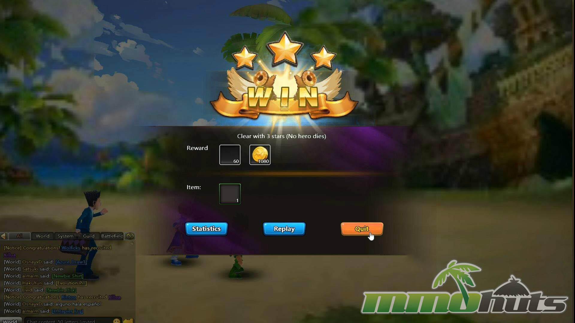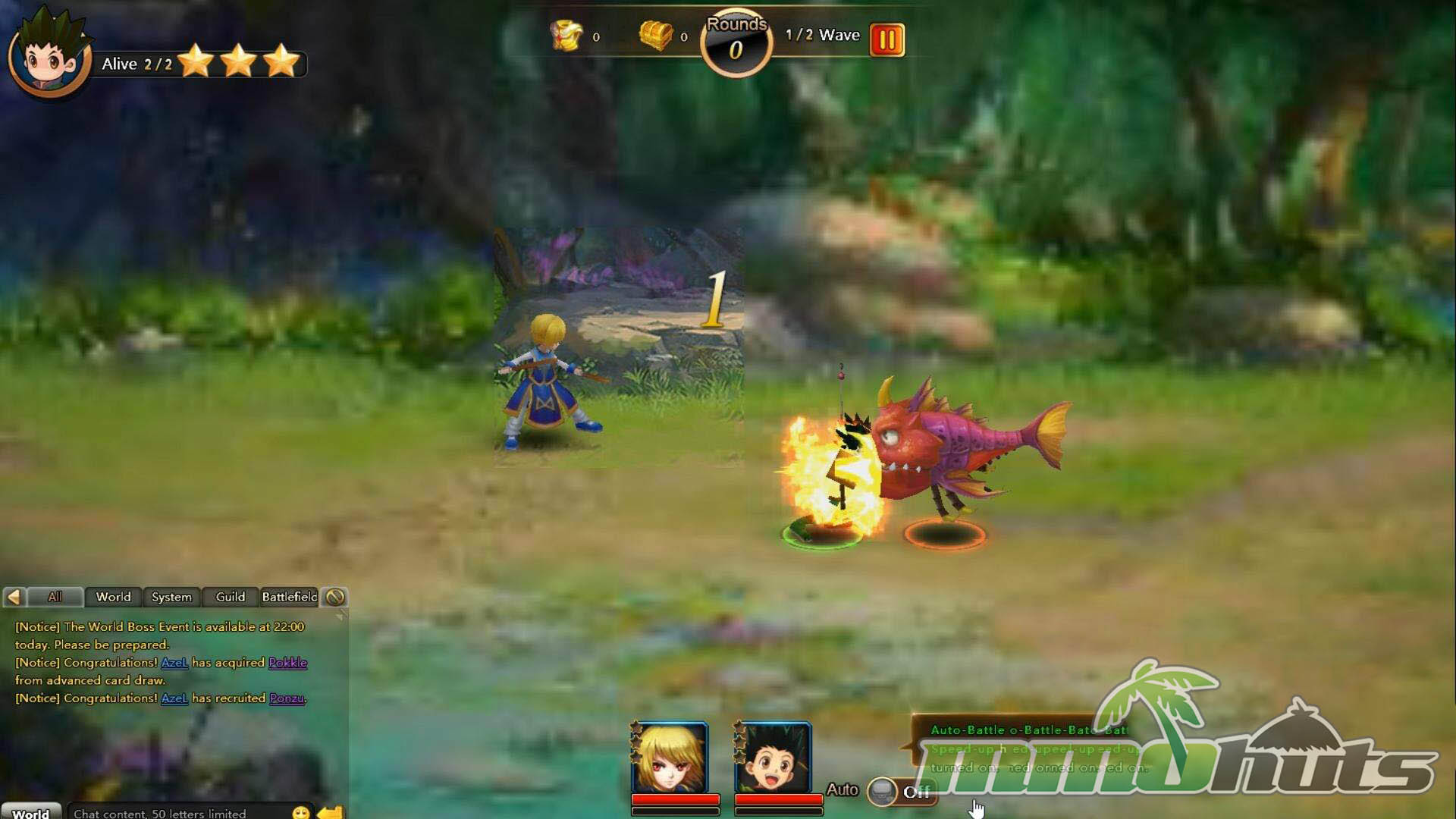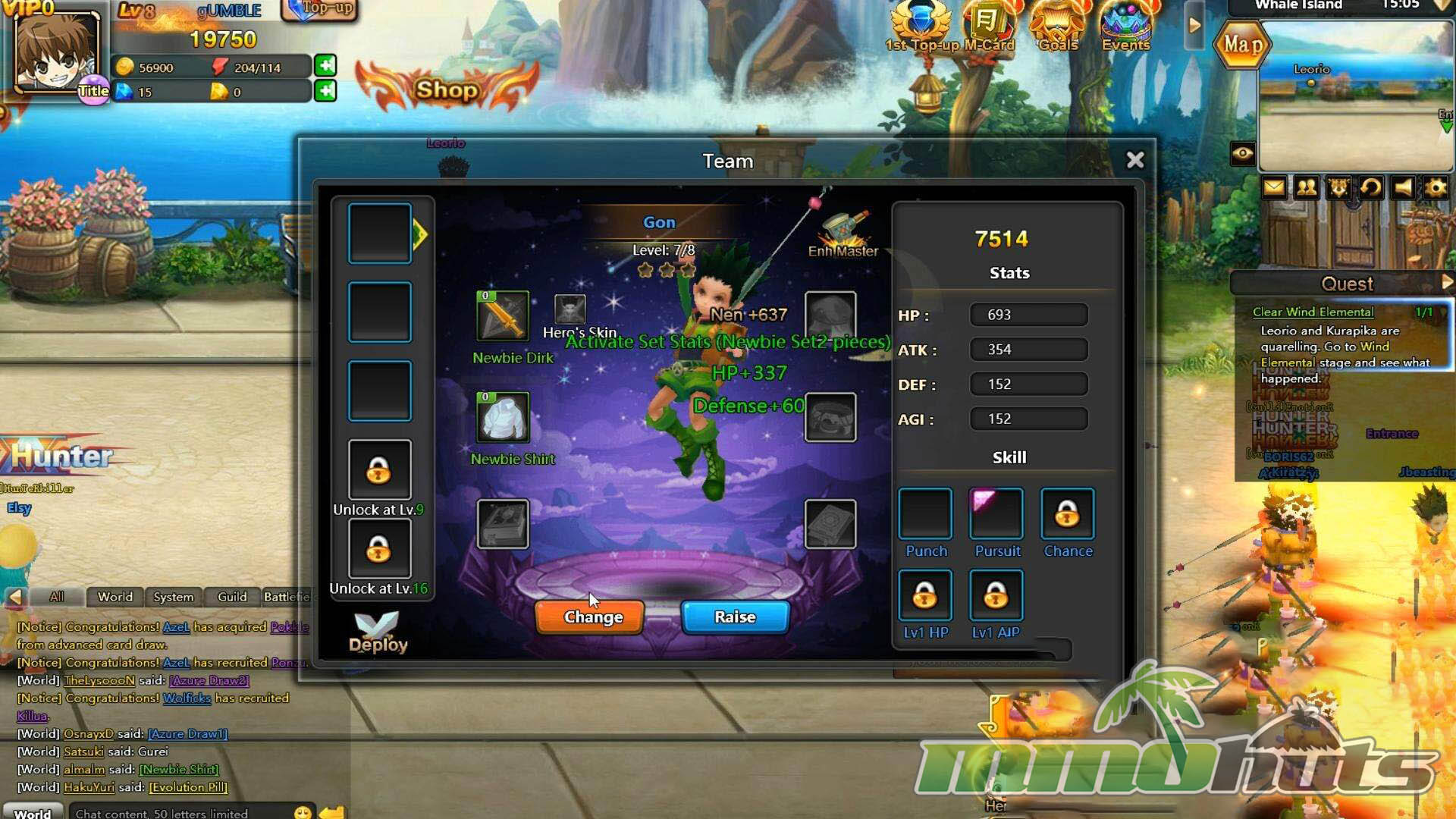 Hunter Online uses a familiar stage-by-stage browser RPG structure and places it inside the Hunter X Hunter universe. You move through the story with Gon and company as quests funnel you from one instanced fight to the next, unlocking additional chapters and systems as you go. Rather than roaming a large shared world, most playtime revolves around assembling a squad, boosting their stats, and clearing missions efficiently, making it feel more like a mission-hub RPG than a classic MMO with explorable zones.