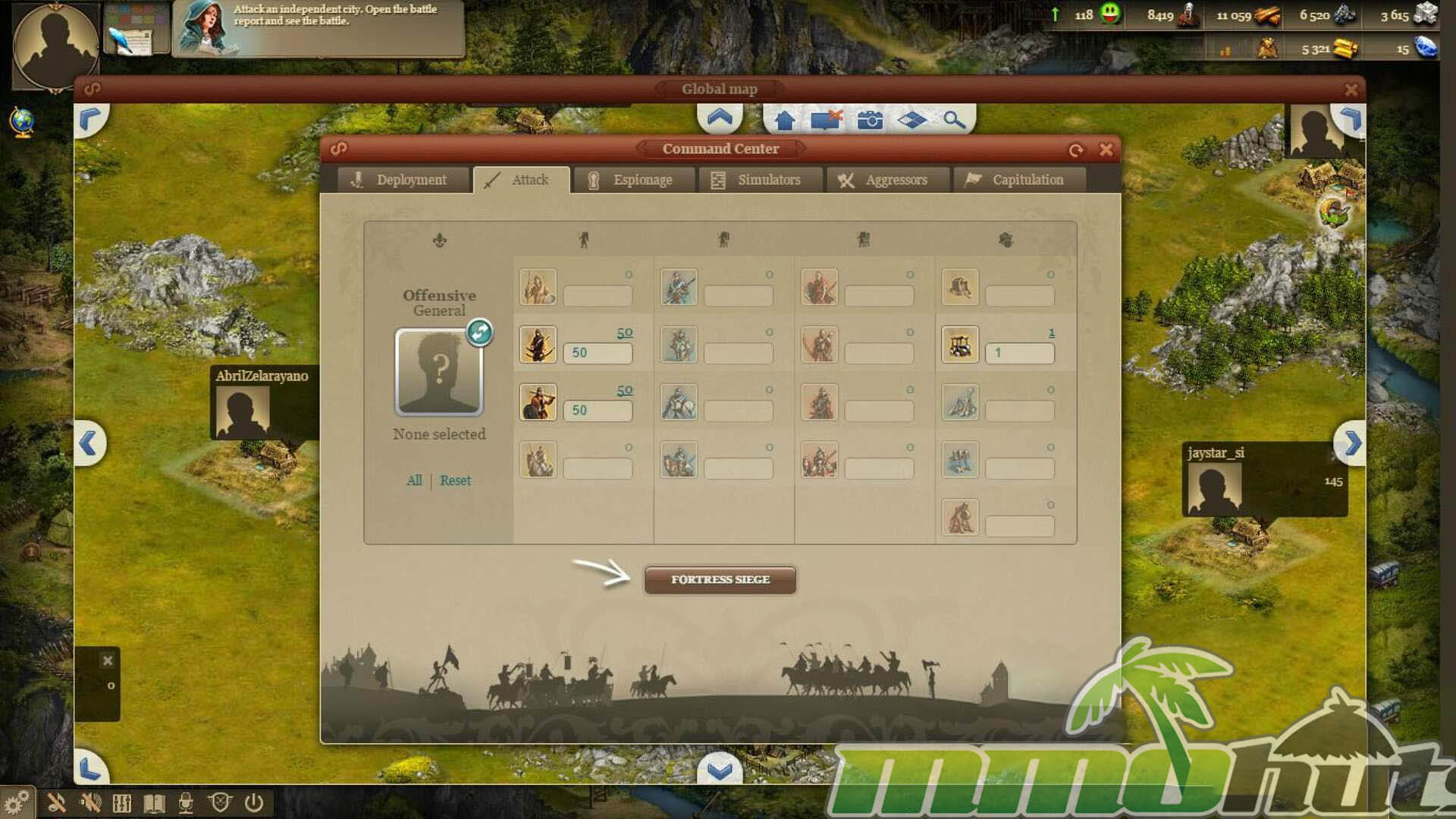 When you attack, the flow is structured into three stages: Field Battle, Fortress Siege, and Pillage. Winning the Field Battle earns Military and Honor points and opens the door to a siege attempt. A successful siege yields resources and enables pillaging, which pays out gold based on the number of villages killed. This layered structure helps make attacks feel like campaigns rather than a single click outcome, even though the resolution itself is automated.