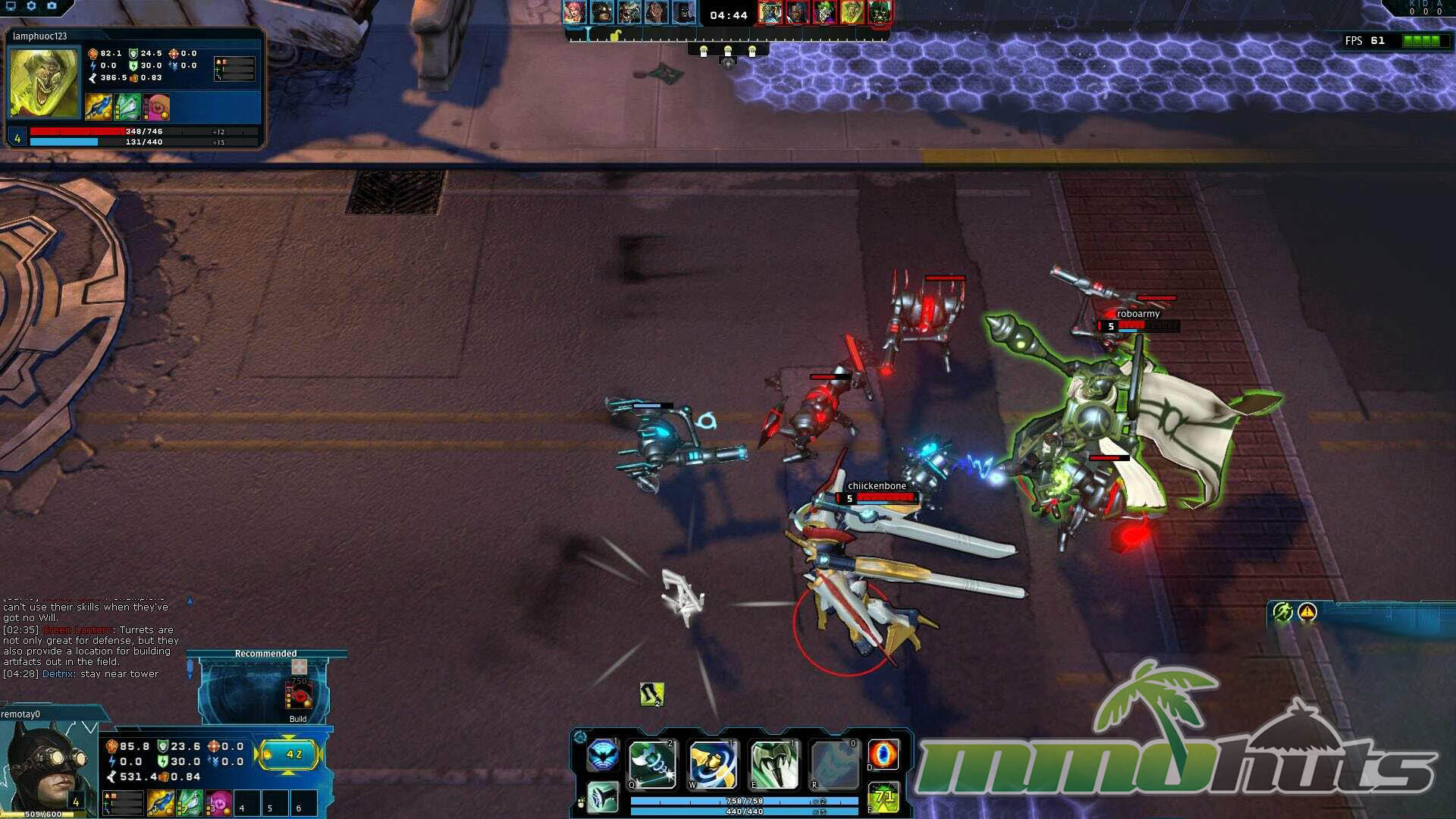 Where it separates itself is in a handful of map mechanics and in how its scaling feels closer to League of Legends than to Dota. Abilities tend to grow alongside your stats, levels, and gear, which keeps most Champions relevant into the late game if they farm and fight effectively. The maps also introduce features like Power Relays that empower drones once captured, plus stealth pads that enable ambushes and repositioning plays. There is also environmental interaction, including destructible elements and the ability to pick up and throw objects like cars and debris, adding extra burst moments to fights around corners and objectives.