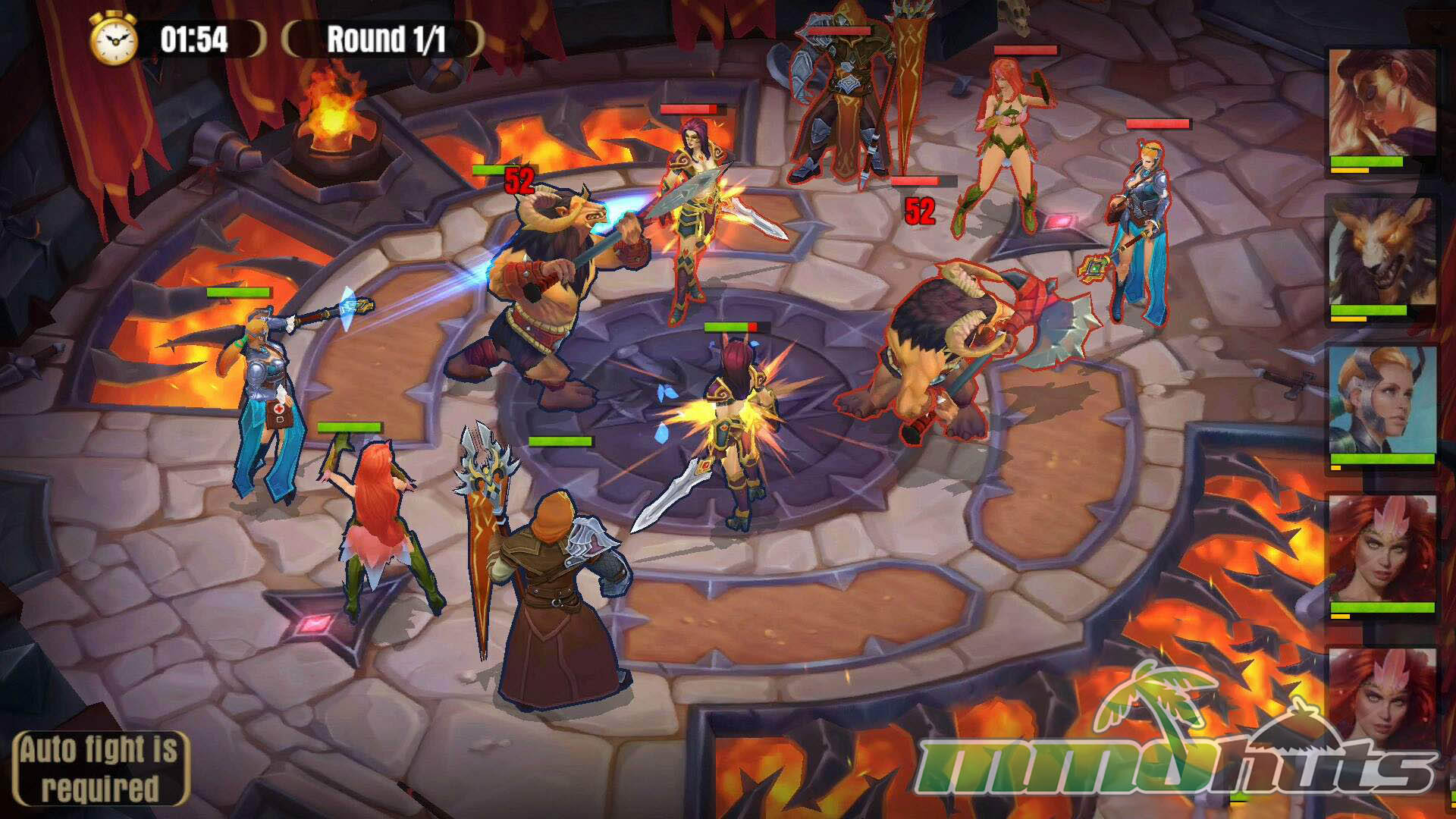 Battles run in an isometric 3D view with your team and the enemy side trading attacks automatically. Your main input is ability activation: as Heroes attack, they fill a meter, and when it is ready you can tap their portrait to fire a skill. This creates occasional decision points around when to burst, when to hold abilities, and how to manage cooldown windows across multiple characters.