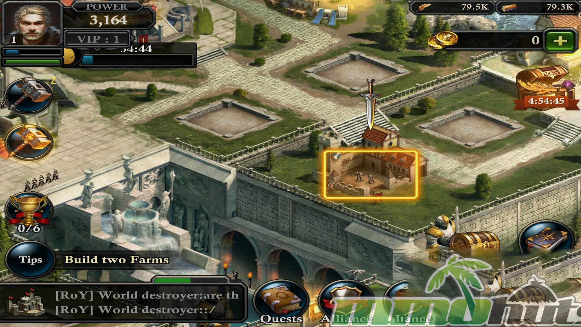 At the center of your progression is a fortress-city that steadily expands with practical buildings such as farms and sawmills for income, military structures for training, and support facilities like hospitals to reduce losses. As your settlement grows, you unlock more ways to improve efficiency and military power, including research at the University and crafting at the Forge, both of which feed directly into your ability to win fights and survive retaliation.