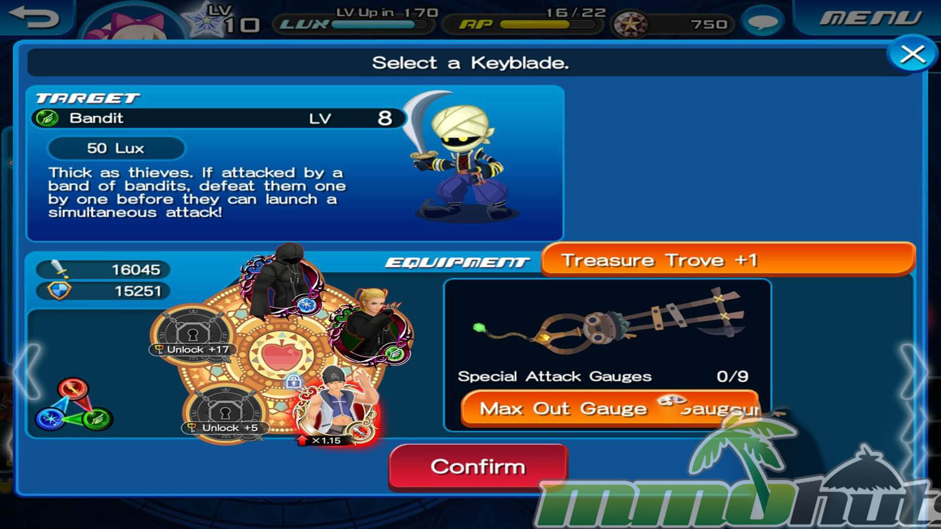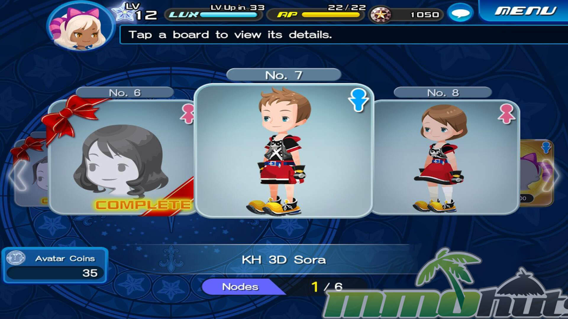 The presentation is clearly designed for mobile, with simplified 2D visuals and compact mission maps. That said, the charm is in the fan service and the accessible pace. New players can get into the rhythm quickly, and the game does a decent job of guiding you toward meaningful upgrades, whether that is improving medal tiers, adjusting Keyblade choices, or unlocking bonuses through the Avatar Board.