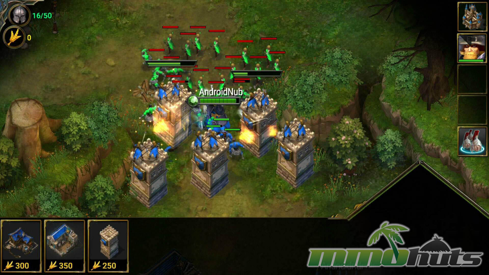 In the Strategy Mode (campaign and real-time PVP), combat resembles a simplified, mobile-first take on the Warcraft 3 and Age of Empires style. You begin with a starting area where you place core structures, including production buildings and defensive options like watchtowers. Economy management is deliberately pared down, because wheat is the only resource you need, and it is gathered automatically through residences placed near wheat fields.