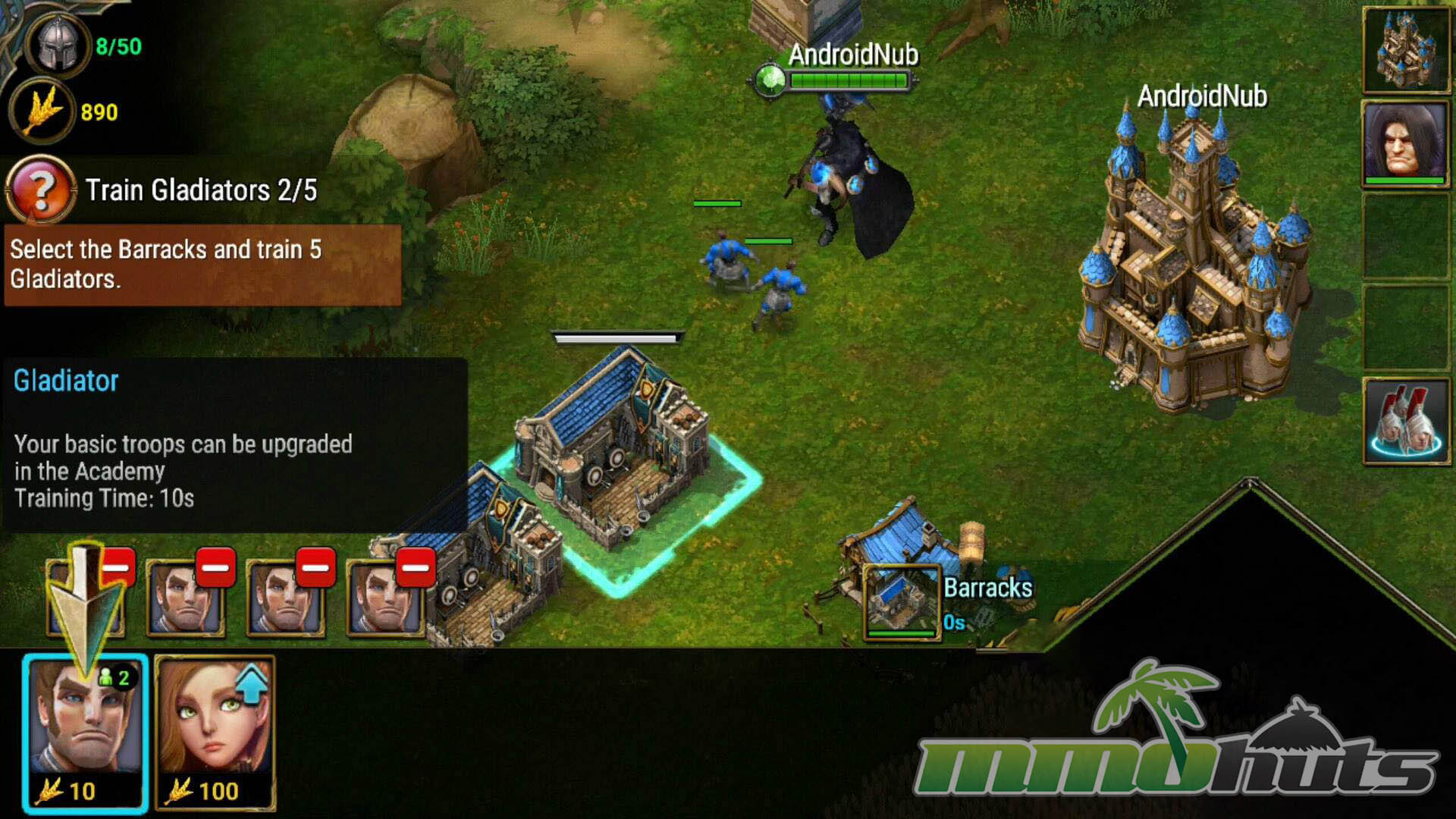 In the Strategy Mode (campaign and real-time PVP), combat resembles a simplified, mobile-first take on the Warcraft 3 and Age of Empires style. You begin with a starting area where you place core structures, including production buildings and defensive options like watchtowers. Economy management is deliberately pared down, because wheat is the only resource you need, and it is gathered automatically through residences placed near wheat fields.