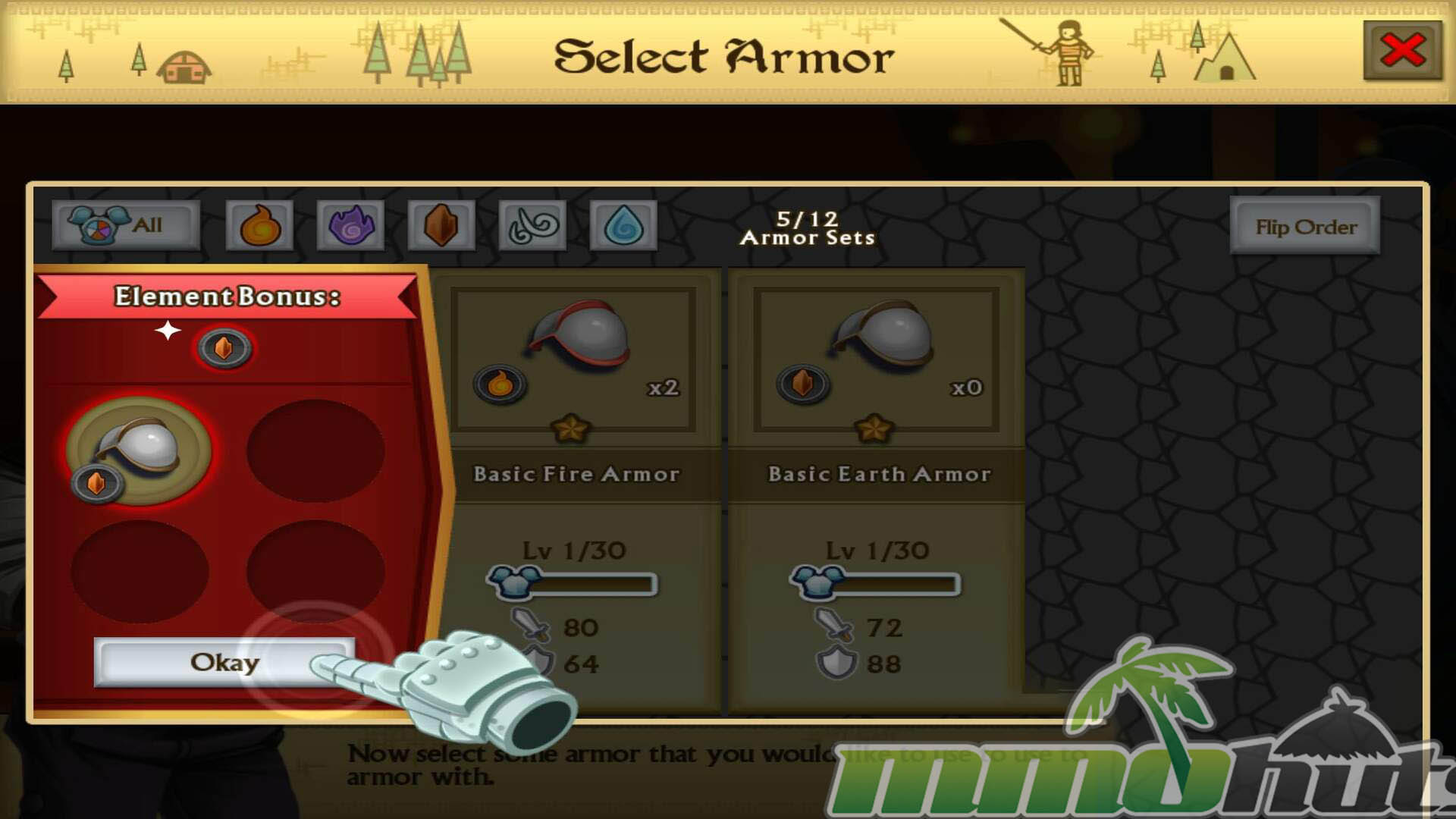 Knights & Dragons revolves around six elements: Fire, Water, Spirit, Earth, Air, and the rare Starmetal. You can maintain up to six knights, and each one is tied to an element through their equipment. Armor, rings, and amulets also carry elements, and standard rules restrict knights to gear that matches their element.