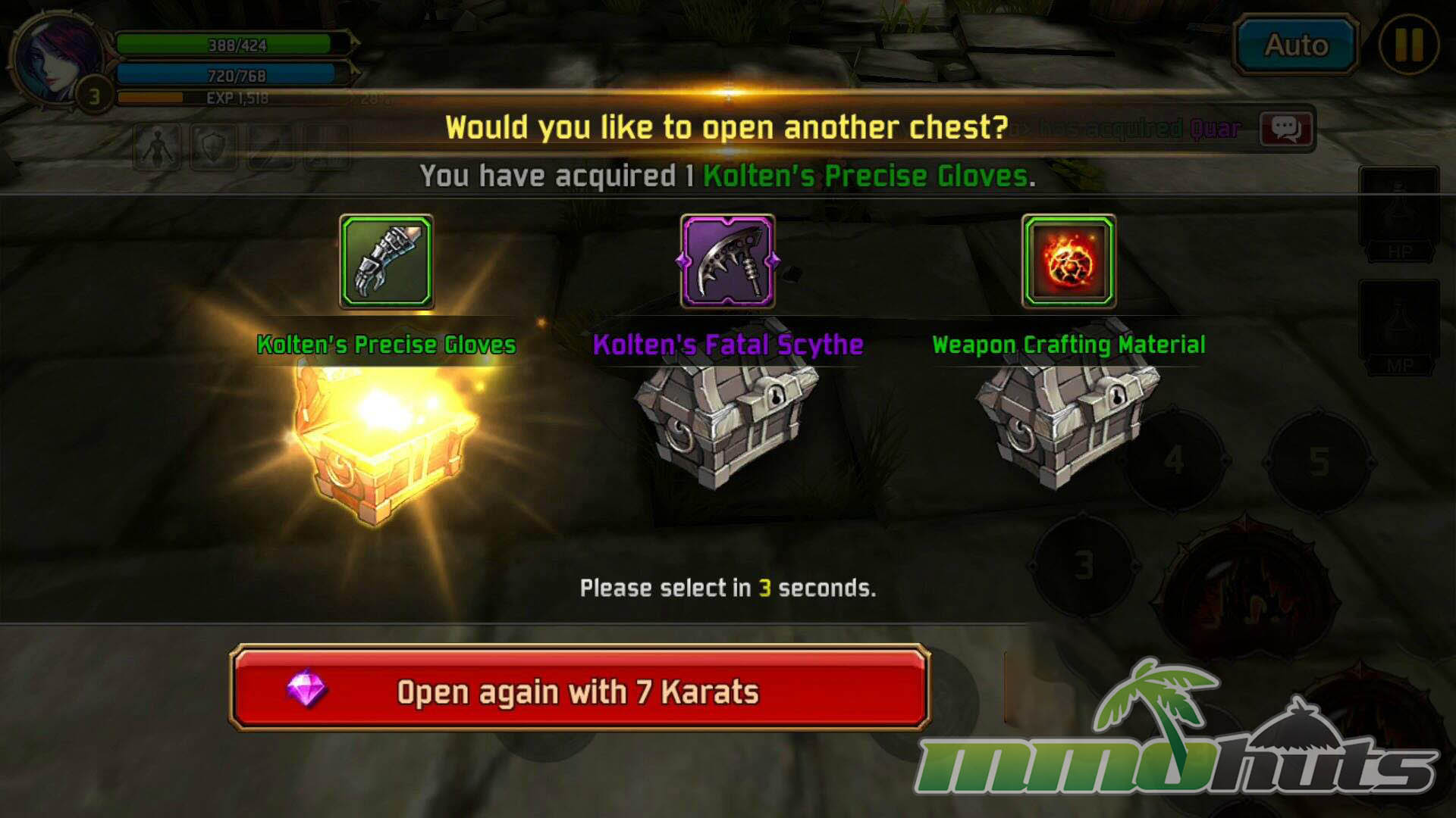 Individual stages are broken into small segments connected by gates. You clear one or two waves, move forward, and repeat until the stage ends. Early on, runs are quick (often a few minutes), but longer layouts and tougher mobs show up later. Rewards include gold, experience, equipment, and crafting materials, plus an end-of-stage chest selection that adds a light layer of randomness. Stamina limits attempts, but the game is generally generous with free stamina, which keeps the loop comfortable for casual and mid-core play without constant waiting.