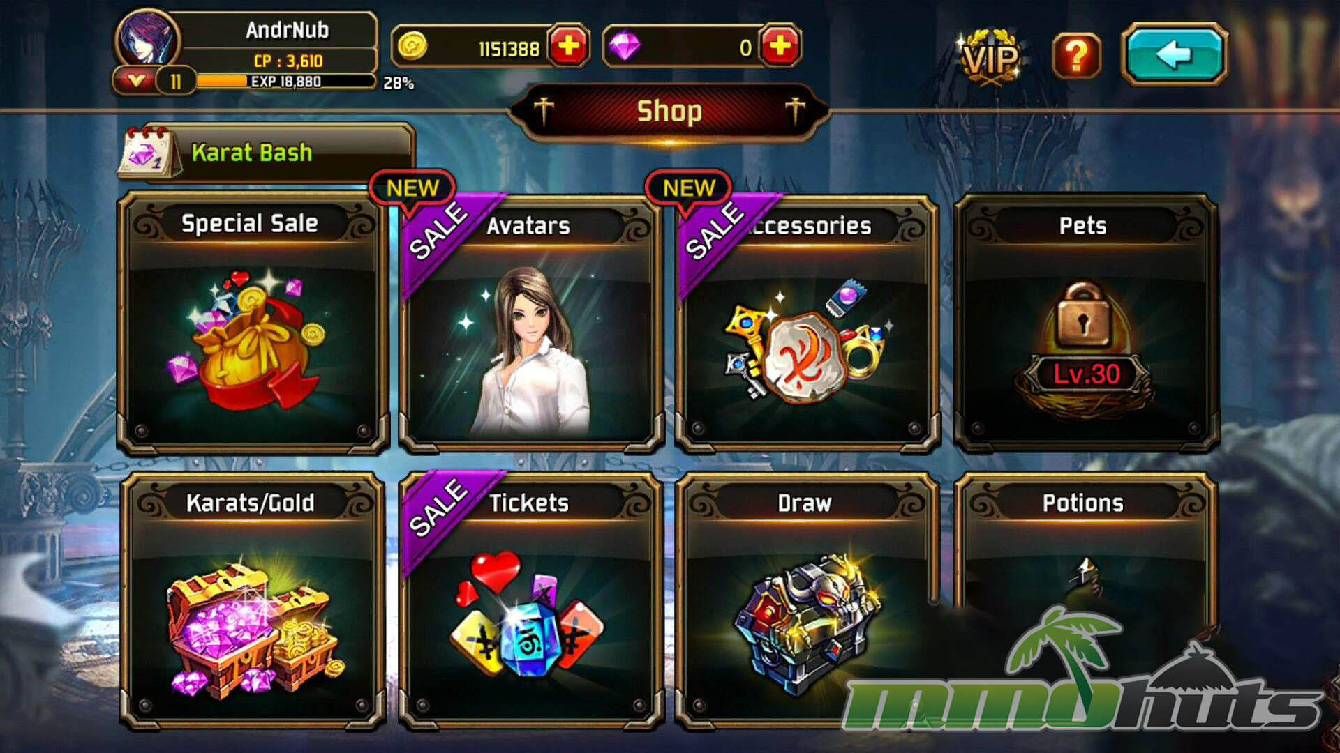 Kritika: The White Knights can be played without spending, but the shop is designed to provide convenience and power boosts. Karats are used for a wide range of purchases, including Avatar items, pets, gold, stamina, stronger consumables, Battle Mode badges, and level-restricted gear. Avatar items are particularly important because they are not purely cosmetic, they also provide stats like Attack, Defense, and Health. With each class offering a very large selection of Avatars, customization is deep, but the stat bonuses mean paying players can gain an edge.