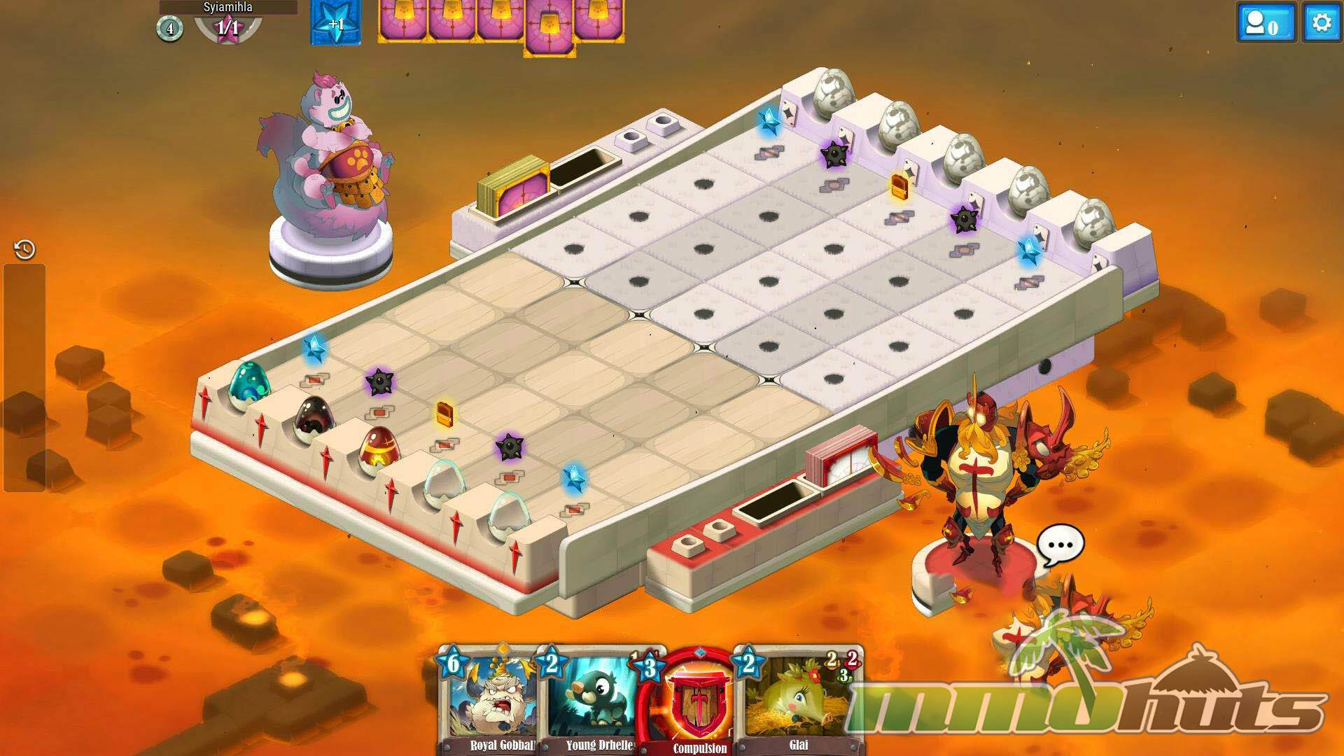 Your objective is straightforward: push units forward until they reach and destroy the enemy’s egg-shaped Dofus towers. Of course, your opponent is trying to do the same, so every turn becomes a decision about whether to commit to offense, stall a lane, or trade efficiently to keep your own Dofus safe. Because minions physically advance across the field, Krosmaga often feels closer to a light tactics game than a traditional card duel.