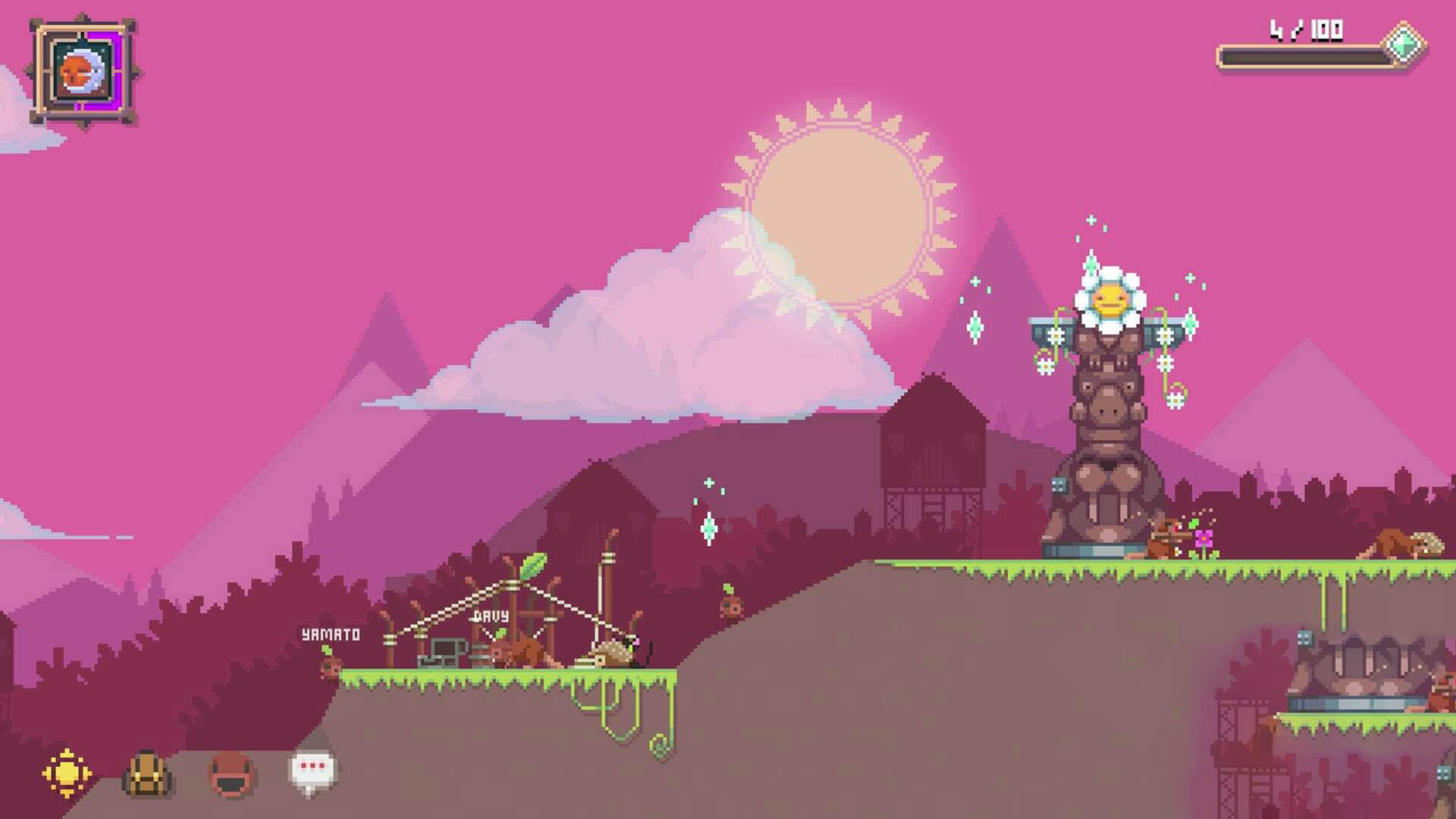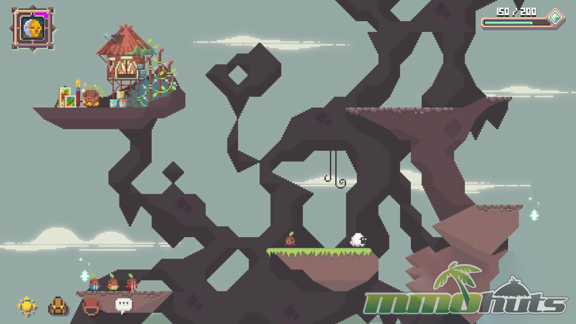 Moment to moment, the game plays like a light platforming and exploration sandbox with an unusual movement constraint. You control a small sapling character that cannot jump, so traversal revolves around careful positioning and using a rope to climb and reach ledges. That limitation sounds simple, but it shapes the pace of exploration and makes the world feel like it was designed around deliberate movement rather than fast action.