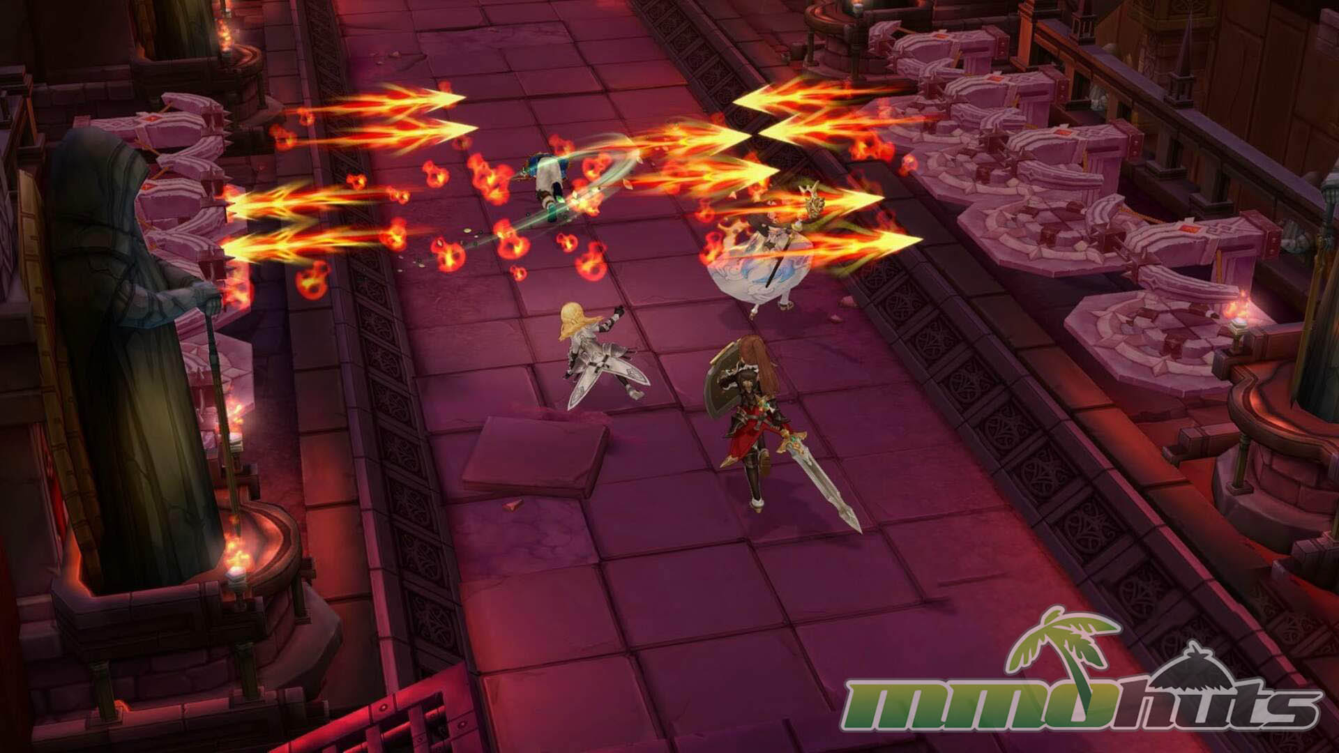 Dungeon runs are the core activity, and they are not just straightforward hallways packed with monsters. Many instances feature environmental hazards, including sudden trap triggers like spikes and flaming projectiles, which can punish players who rush blindly. Boss encounters are the other big centerpiece. These fights are designed to be loud and disruptive, with enemies using powerful “OverKill” attacks that can toss characters around and temporarily take control away from the player. Winning these battles is also tied to progression, since bosses can unlock distinctive weapons that provide additional bonus skills when equipped, giving dungeon clears a tangible reward beyond simple stat upgrades.