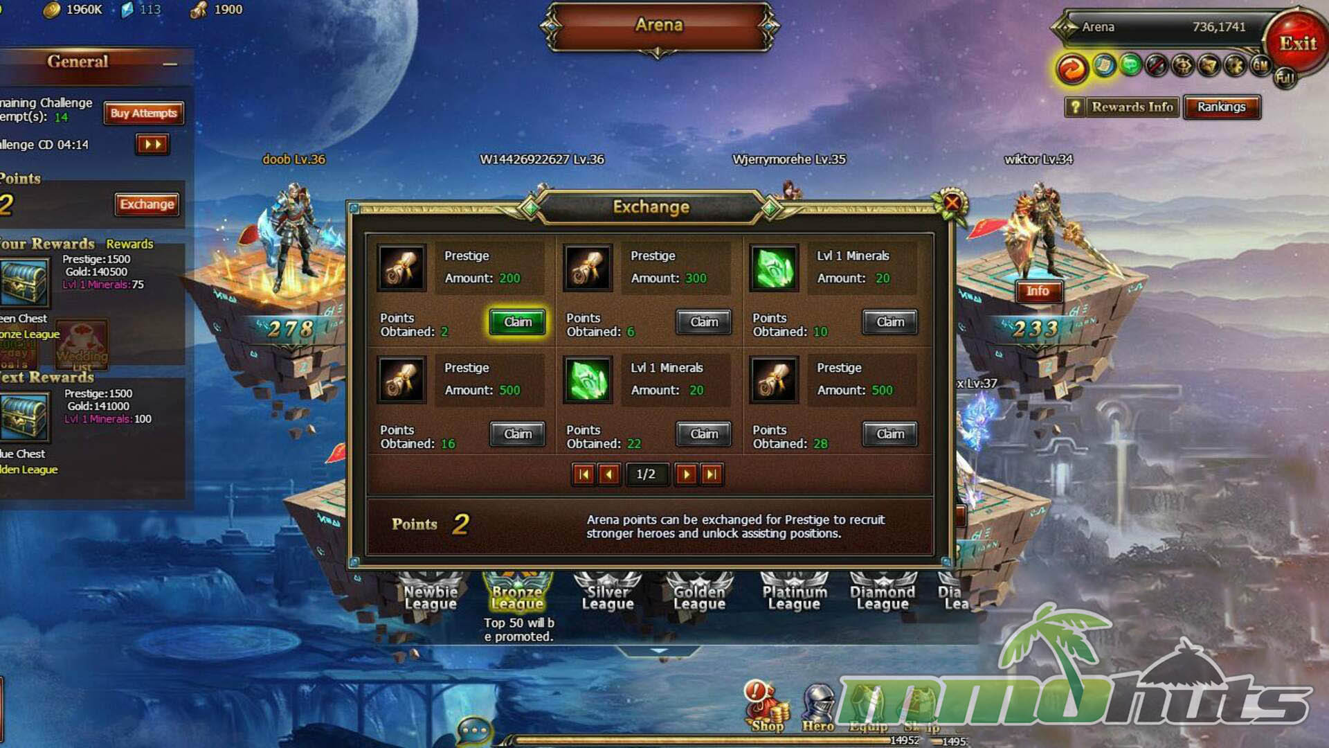 For PvP, Legend Knight uses party-versus-party arena battles that determine rank. Wins provide a mix of Minerals, Prestige, and Gold, and higher placement improves your overall payout. The PvP itself follows the same underlying structure as PvE combat, so success is largely about roster strength, formation choices, and progression advantages rather than mechanical outplay.
