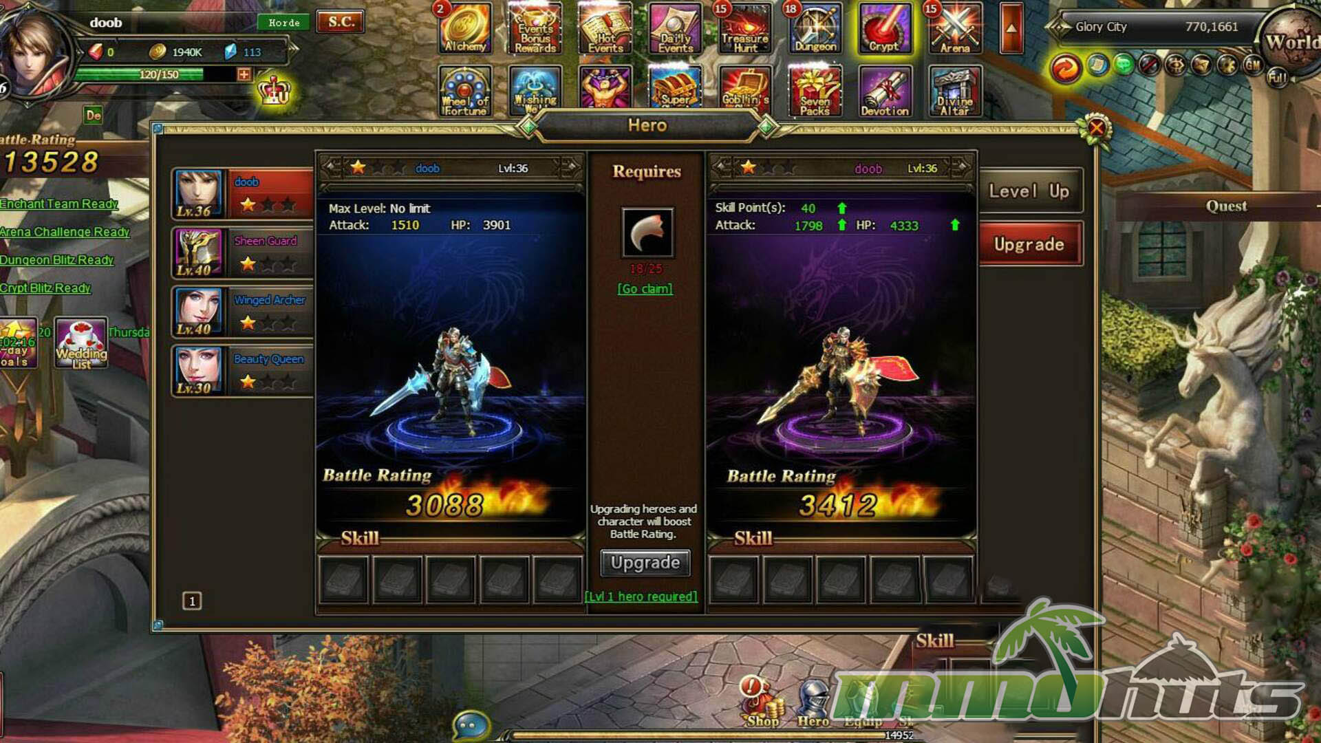 Legend Knight delivers a familiar browser MMO formula with a heavy emphasis on automation and incremental upgrades. The core systems, building a party, arranging formations, earning better star ratings, and improving gear through sockets and synthesis, can be satisfying if you enjoy management and steady numbers growth. At the same time, the limited class variety, cluttered UI, and dated audiovisual presentation make it hard to recommend over more modern free-to-play MMORPG options.