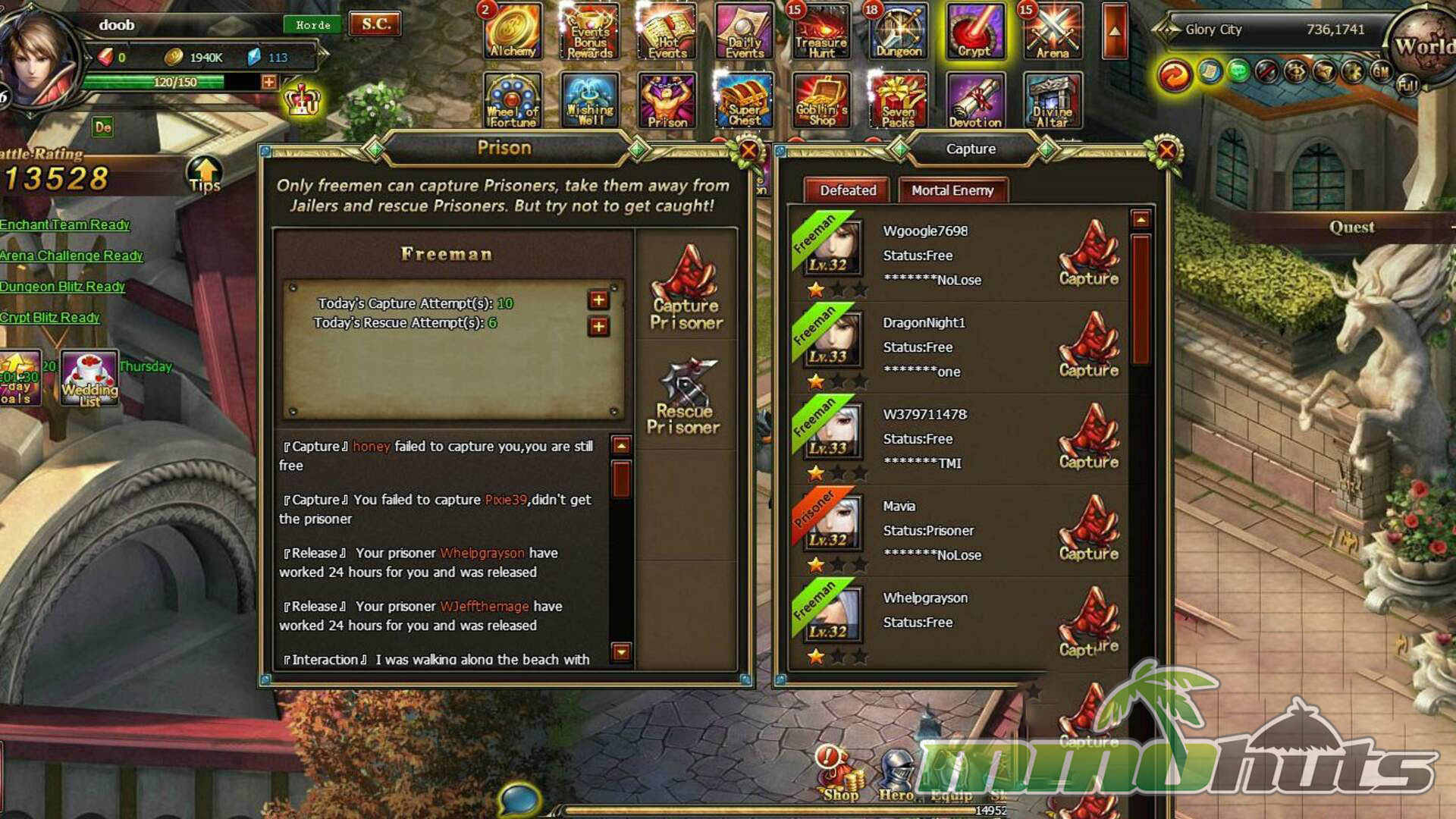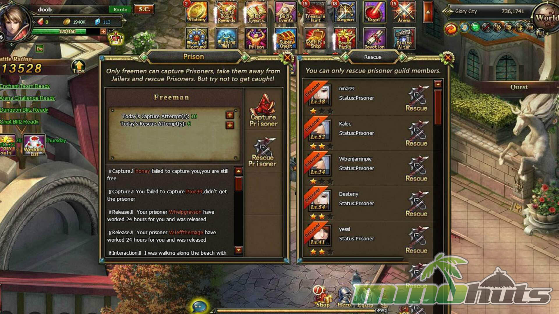 Presentation is functional rather than impressive. The visuals land in the “budget browser MMO” tier, readable but lacking polish, and the overall look can feel like familiar assets repackaged into a new theme. Audio is serviceable at first, yet the high-pitched, repetitive tone can wear thin quickly, especially during longer sessions. The interface is arguably the biggest hurdle, it is packed with icons, menus, and alerts that compete for attention and reduce screen space during play.