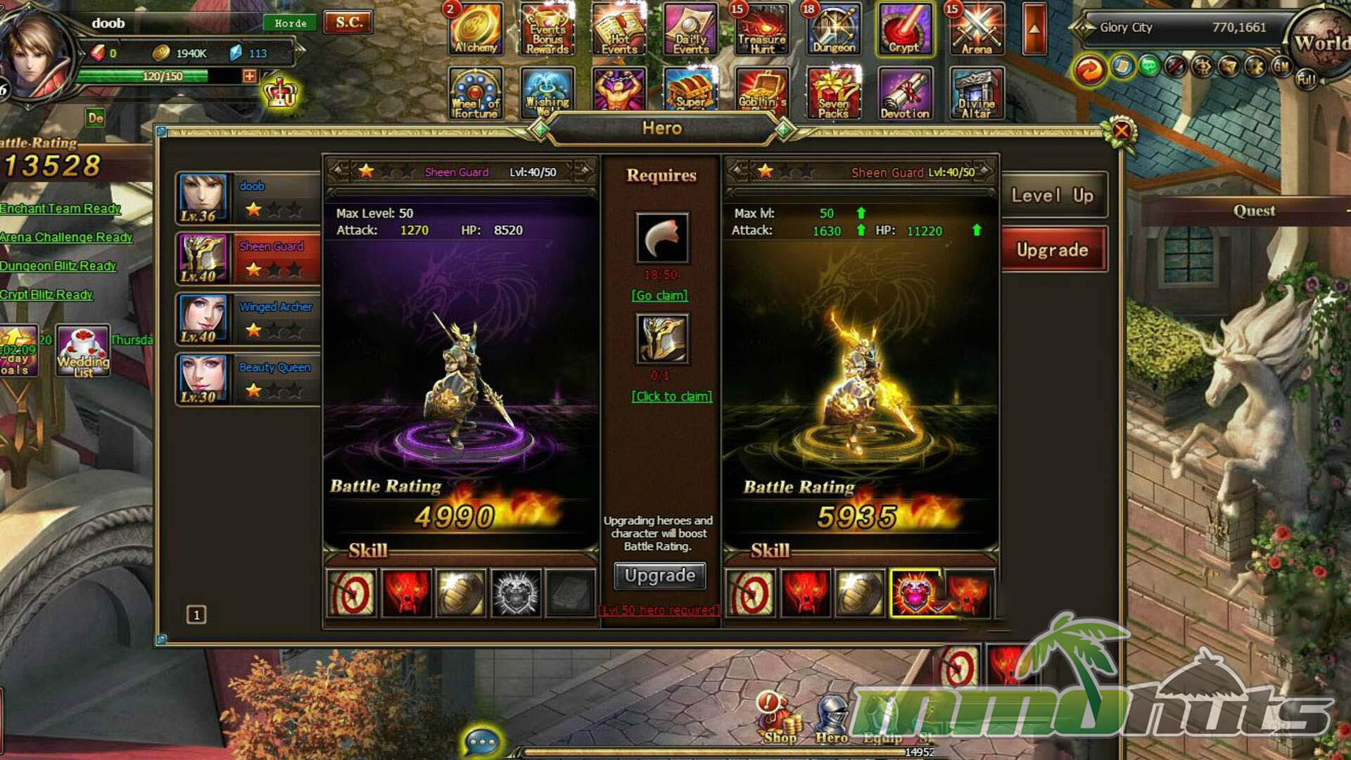 Legend Knight delivers a familiar browser MMO formula with a heavy emphasis on automation and incremental upgrades. The core systems, building a party, arranging formations, earning better star ratings, and improving gear through sockets and synthesis, can be satisfying if you enjoy management and steady numbers growth. At the same time, the limited class variety, cluttered UI, and dated audiovisual presentation make it hard to recommend over more modern free-to-play MMORPG options.