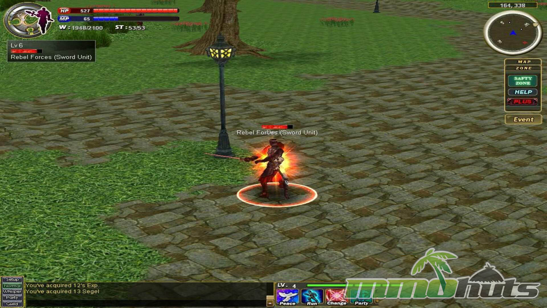 Character creation is straightforward and deliberately old-school. Players choose between four classes, Gladiator, Paladin, Archer, and Sorcerer, then align with one of the two sides, the Holy Empire or the Religious Alliance. From there, the game’s content loop leans heavily toward player conflict. While there are monsters to hunt and areas to explore, the main attraction is the PvP framework, including both individual matchups and organized, guild-scale confrontations where ownership of strategic territory is on the line.