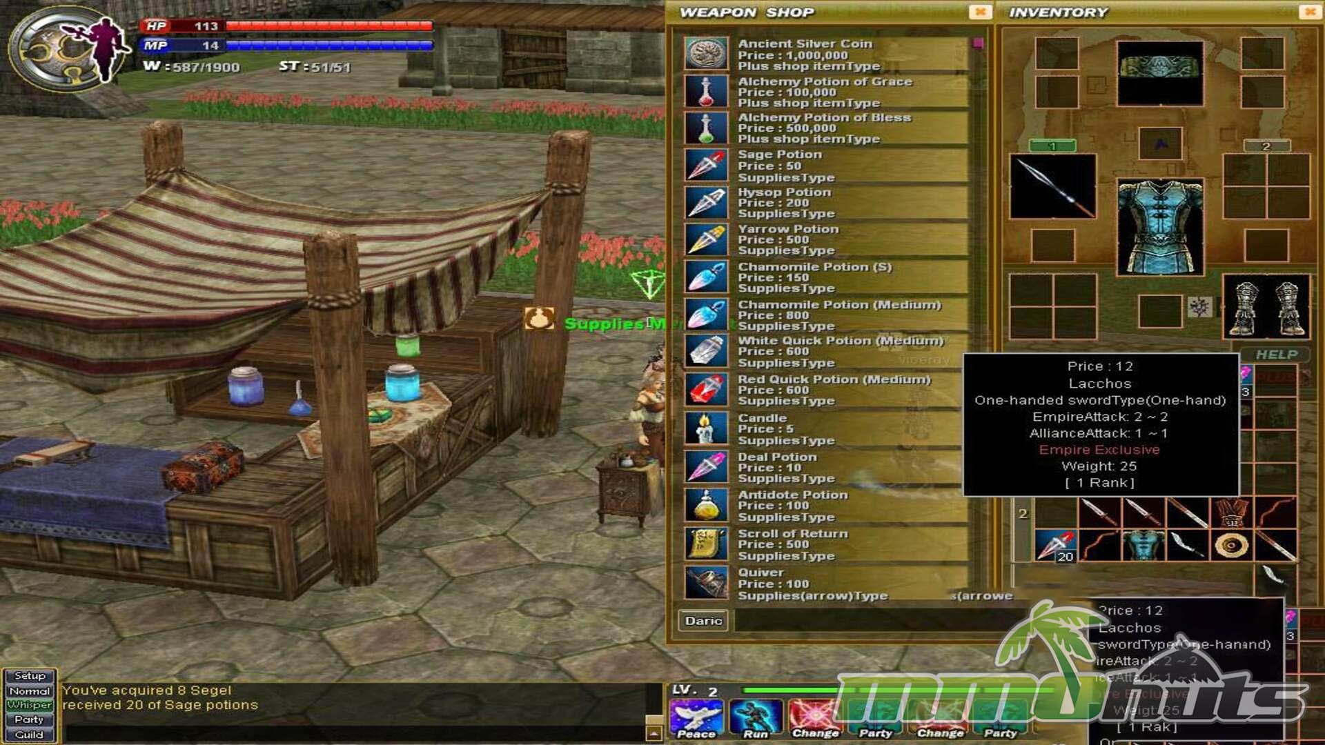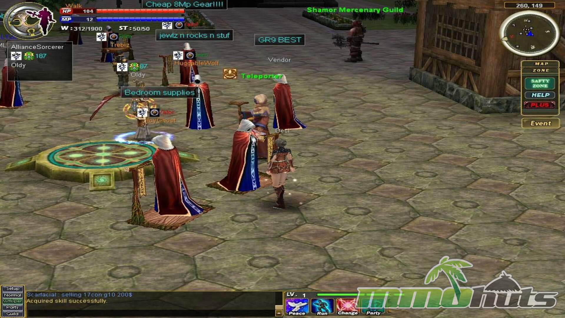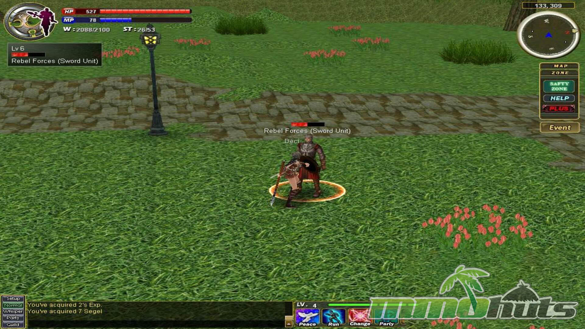 Character creation is straightforward and deliberately old-school. Players choose between four classes, Gladiator, Paladin, Archer, and Sorcerer, then align with one of the two sides, the Holy Empire or the Religious Alliance. From there, the game’s content loop leans heavily toward player conflict. While there are monsters to hunt and areas to explore, the main attraction is the PvP framework, including both individual matchups and organized, guild-scale confrontations where ownership of strategic territory is on the line.