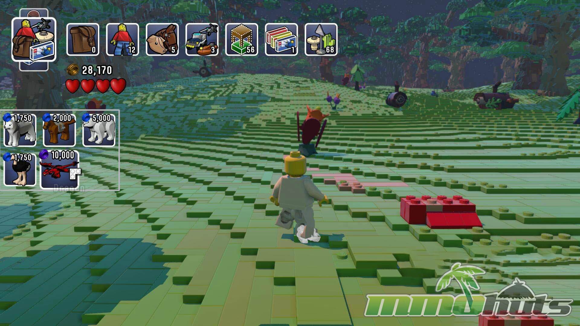 As you travel between regions you will encounter different minifigures, monsters, and themed objects. The first time you find something new, it gets recorded so you can access it later through the in-game shop interface, where you spend the currency you collect. Many objects are destructible and visually highlighted, breaking them apart showers the area with LEGO bits and rewards you with the money used to unlock more items. It is a simple loop, but it works, explore, collect, unlock, then return to building with a larger toolbox.