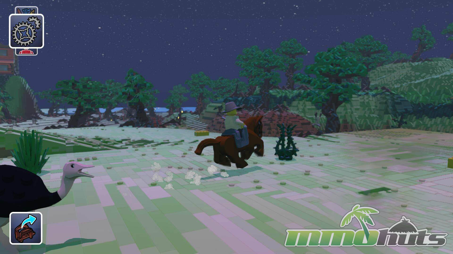 Dropping into a new world has a light “adventure” vibe, you can arrive in the ocean, on a snowy shoreline, or near a cluster of props that look like they came straight out of a boxed LEGO set. Wildlife and NPCs are scattered around, and the game encourages you to interact with everything, either by riding it, unlocking it, or smashing it apart for currency. Creatures that look intimidating are not always aggressive, and a lot of the fun comes from trying interactions just to see what the game allows, such as hopping onto an animal mount and sprinting across the map to the next climate.