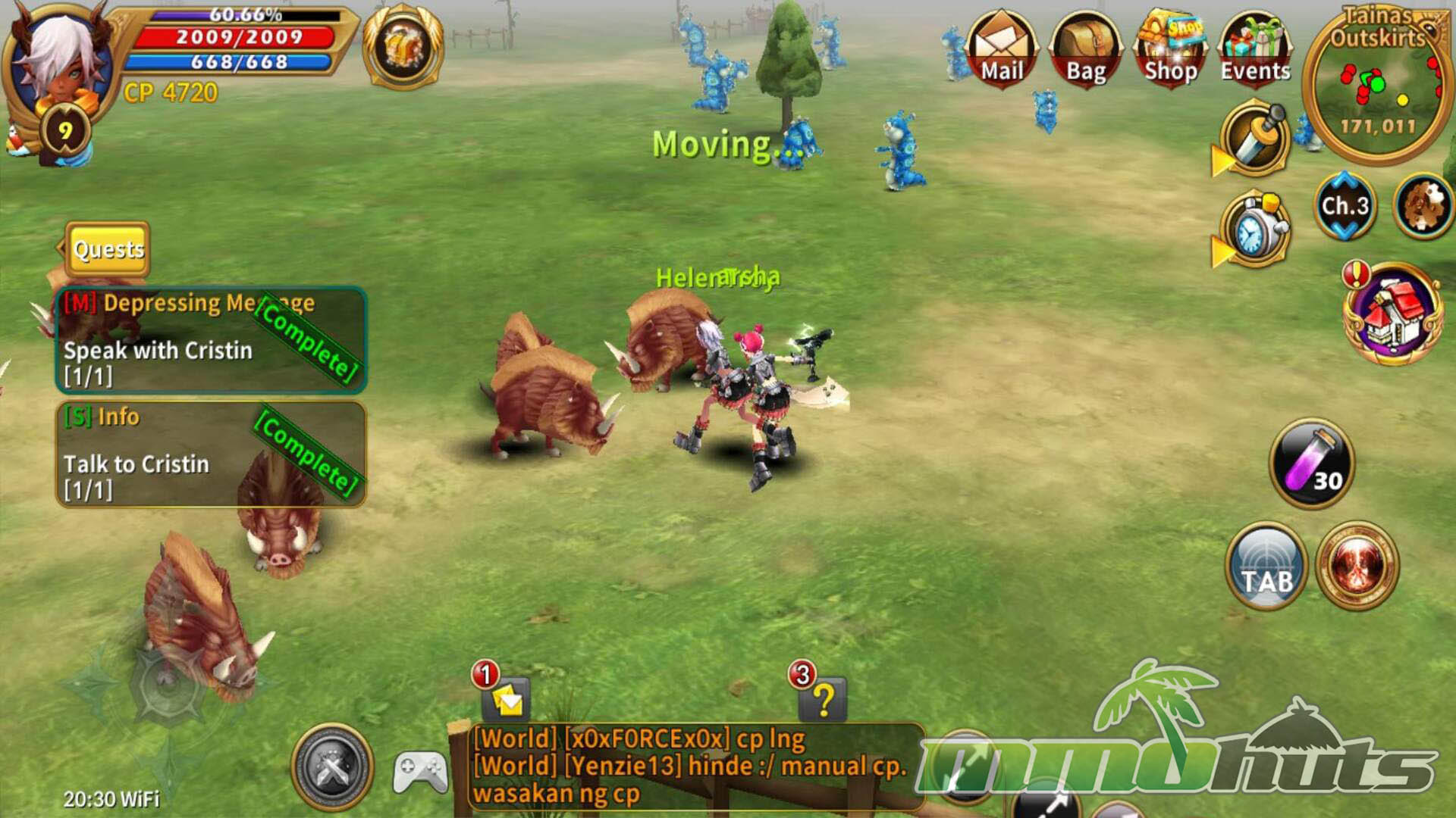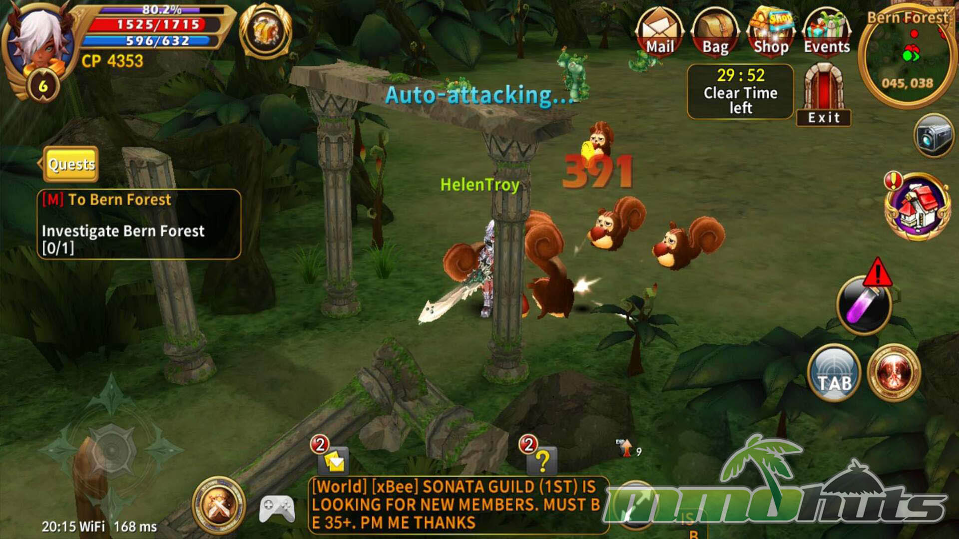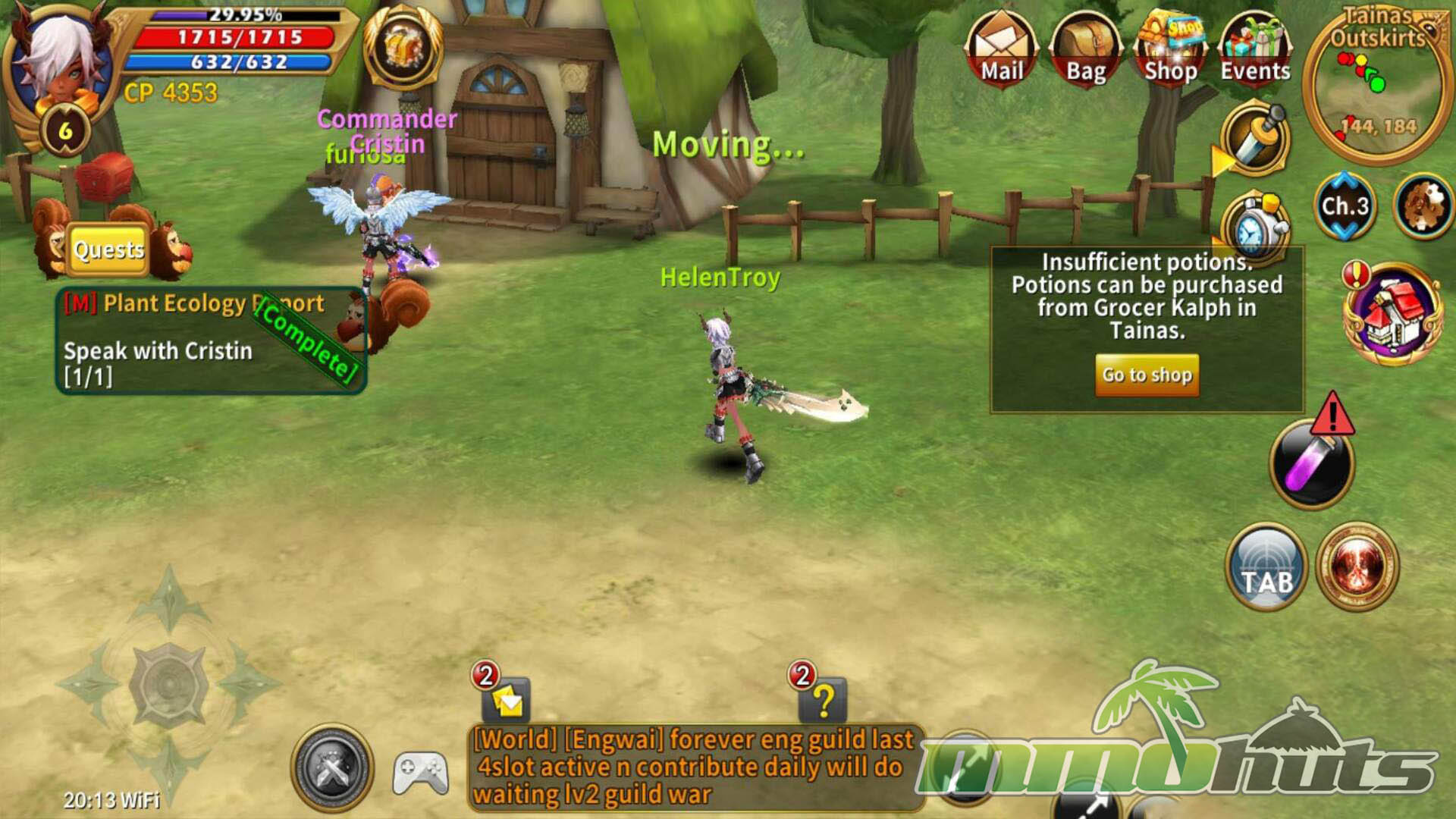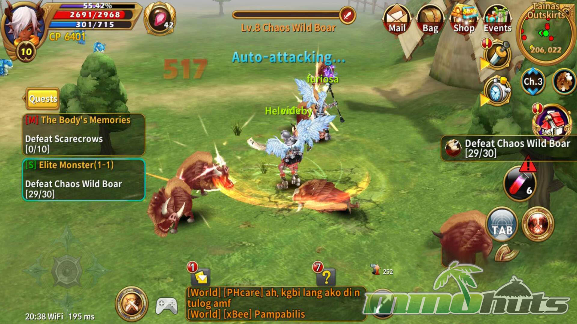 Like many mobile MMOs of its era, Light of Aiaran leaned hard into auto-gameplay. With a tap, your character could path to objectives, talk to NPCs, and fight mobs with minimal manual input. That made it easy to progress in short sessions, but it also reduced the sense of active combat control for players who wanted more hands-on action. To break up the routine, you could group up to challenge roaming world bosses for loot, and spend time chasing cosmetic items, including flashy accessories that helped your character stand out in town.