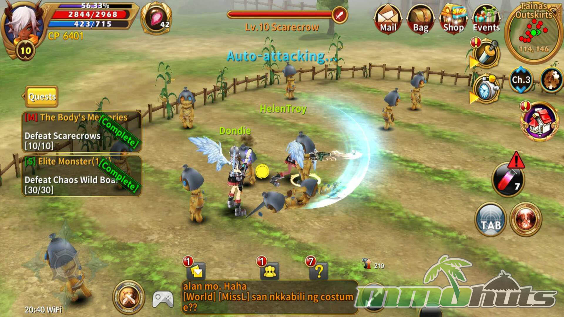 Like many mobile MMOs of its era, Light of Aiaran leaned hard into auto-gameplay. With a tap, your character could path to objectives, talk to NPCs, and fight mobs with minimal manual input. That made it easy to progress in short sessions, but it also reduced the sense of active combat control for players who wanted more hands-on action. To break up the routine, you could group up to challenge roaming world bosses for loot, and spend time chasing cosmetic items, including flashy accessories that helped your character stand out in town.