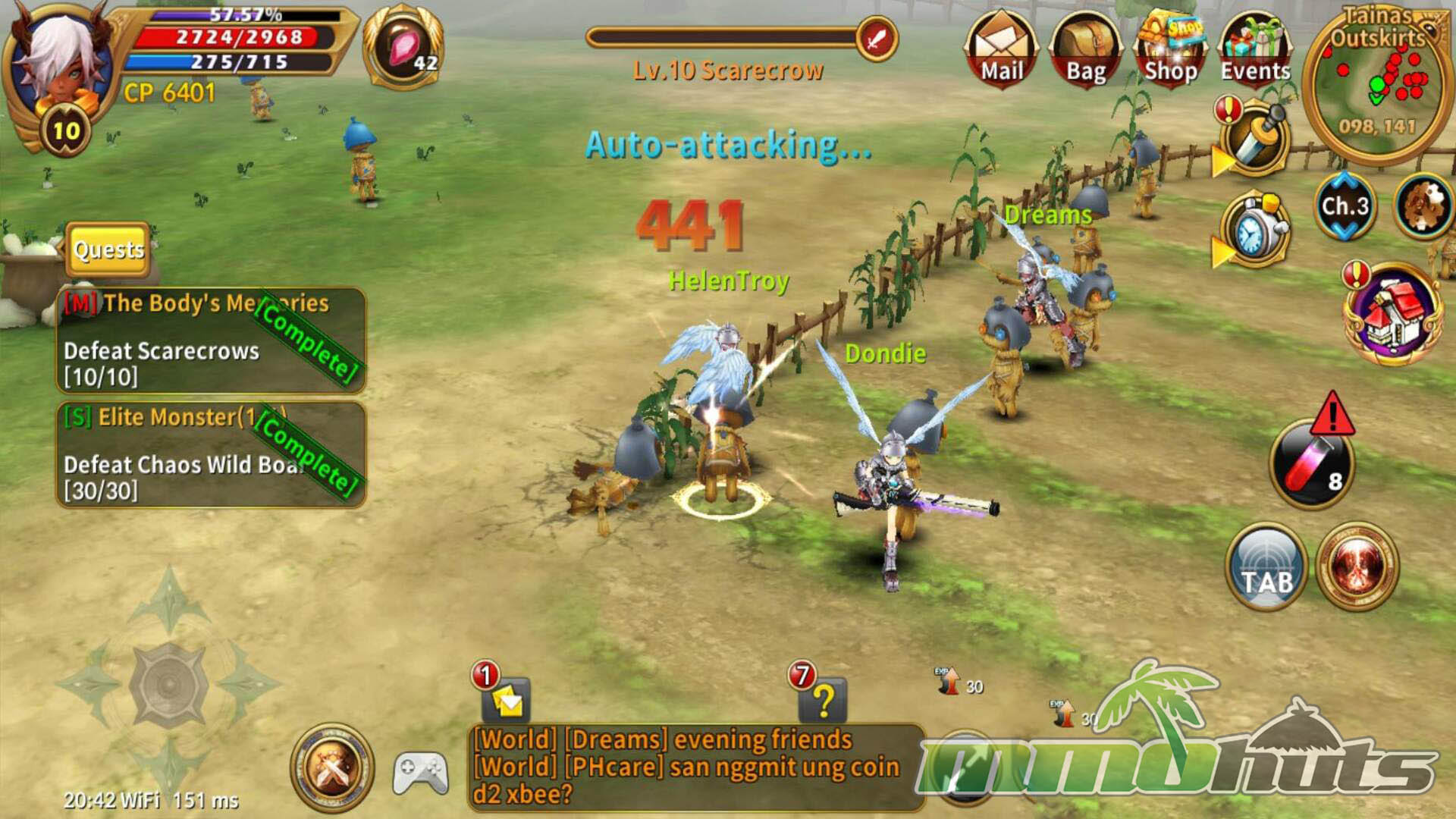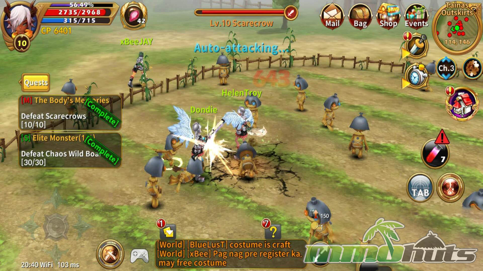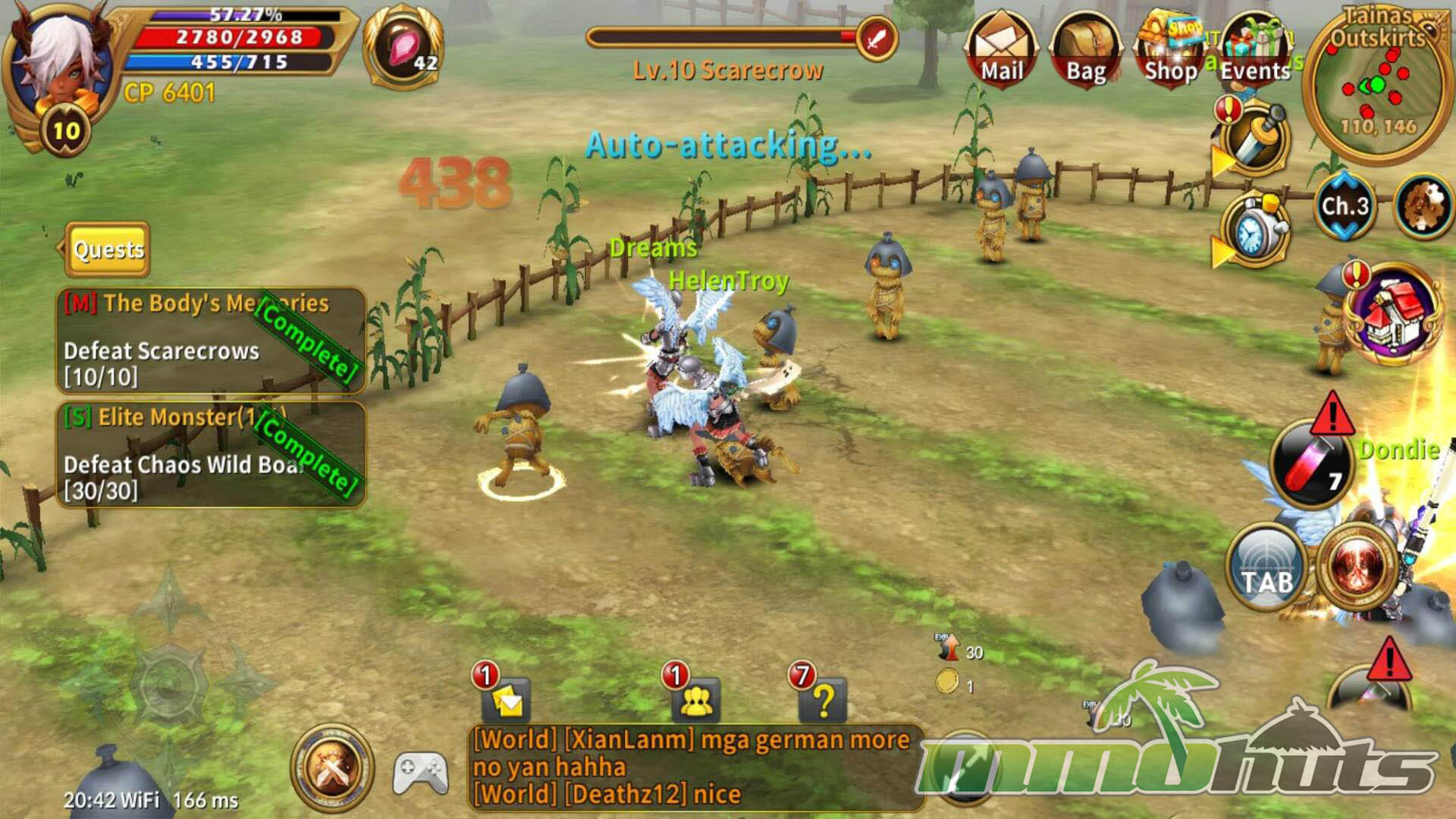 Like many mobile MMOs of its era, Light of Aiaran leaned hard into auto-gameplay. With a tap, your character could path to objectives, talk to NPCs, and fight mobs with minimal manual input. That made it easy to progress in short sessions, but it also reduced the sense of active combat control for players who wanted more hands-on action. To break up the routine, you could group up to challenge roaming world bosses for loot, and spend time chasing cosmetic items, including flashy accessories that helped your character stand out in town.