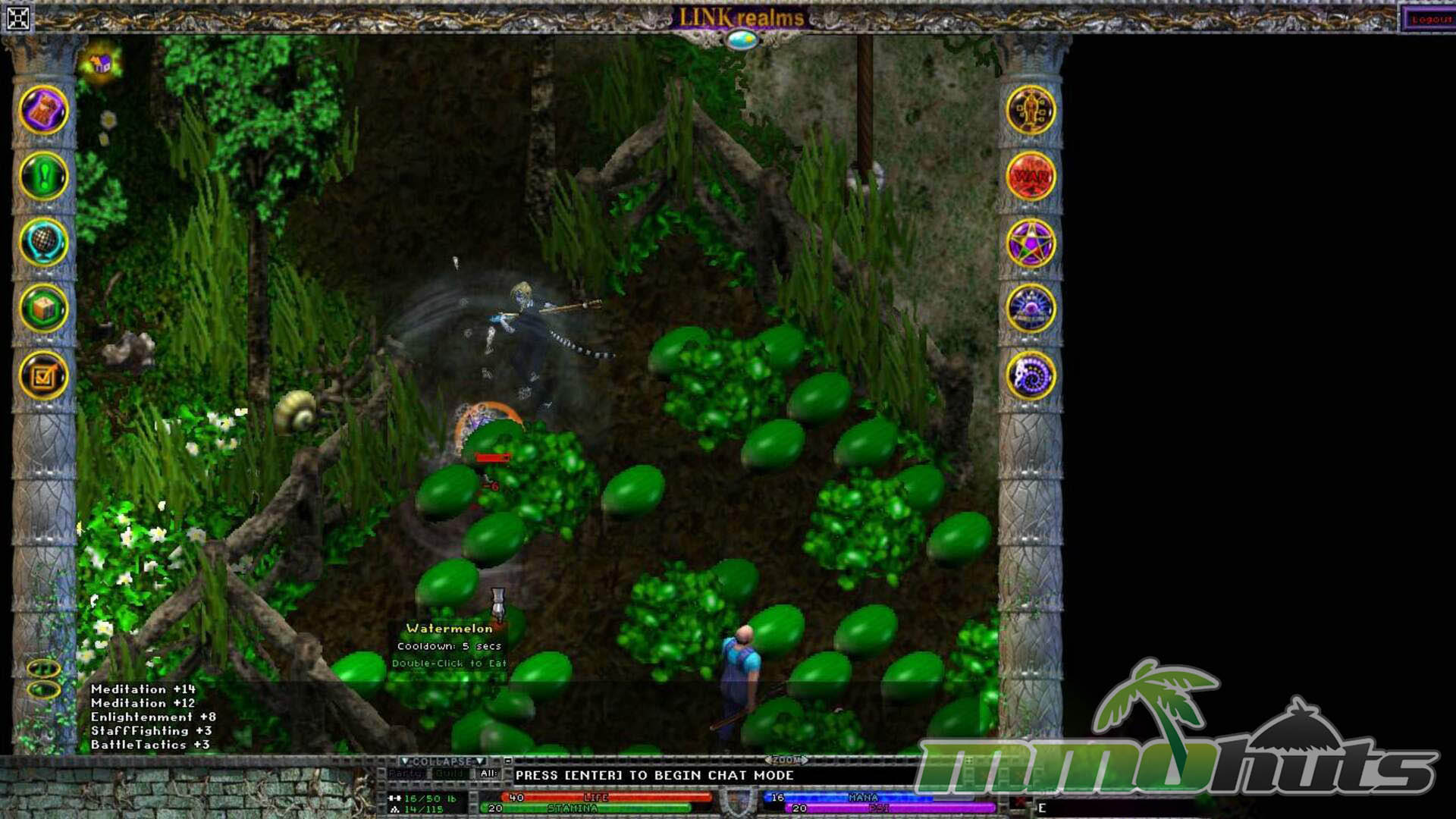 The biggest obstacle to enjoying Linkrealms tends to show up early, the controls feel unintuitive and sluggish. Movement relies on holding the right mouse button while steering your character toward the cursor, with distance influencing whether you walk or run. Attacking asks for extra precision, including double-clicking a target and then closing into range, which can feel cumbersome during hectic fights. Combined with slow response, the result is a control scheme that can be physically tiring over longer sessions.