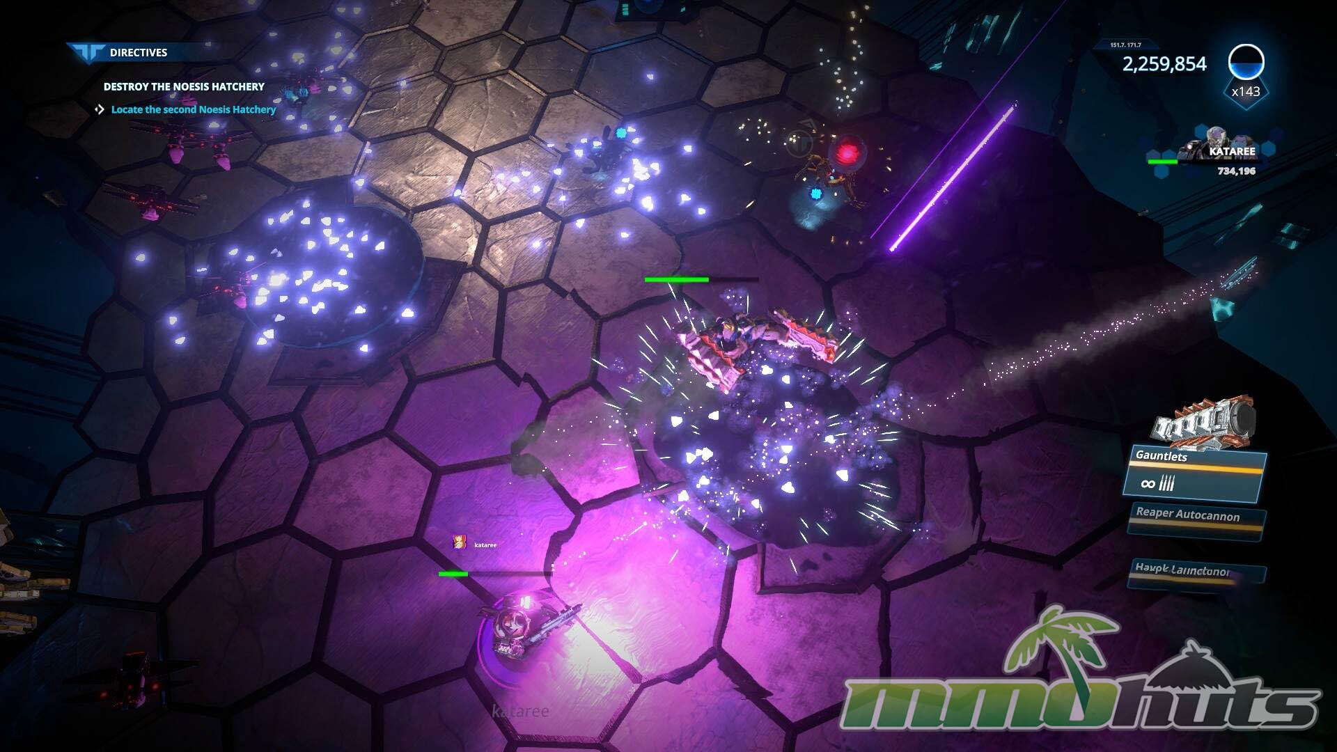 | Publisher: Arc Games Playerbase: Low Type: Buy to Play Shooter Release Date: August 30, 2016 Pros: +Sharp visuals and strong effects work. +Combat is relentlessly explosive and satisfying. +Movement and shooting feel quick and responsive. +Loadouts offer meaningful skill variety per chassis. Cons: -Narrative and characters do not land. -Score-first design makes dying feel trivial. -Inputs can swap unpredictably between control schemes. -PS4 performance and optimization are uneven. |