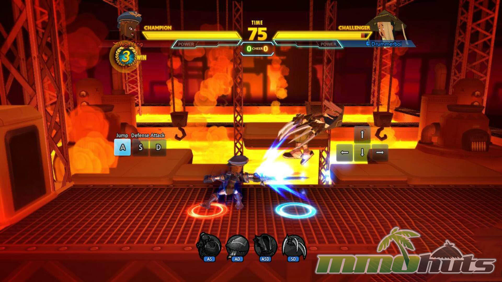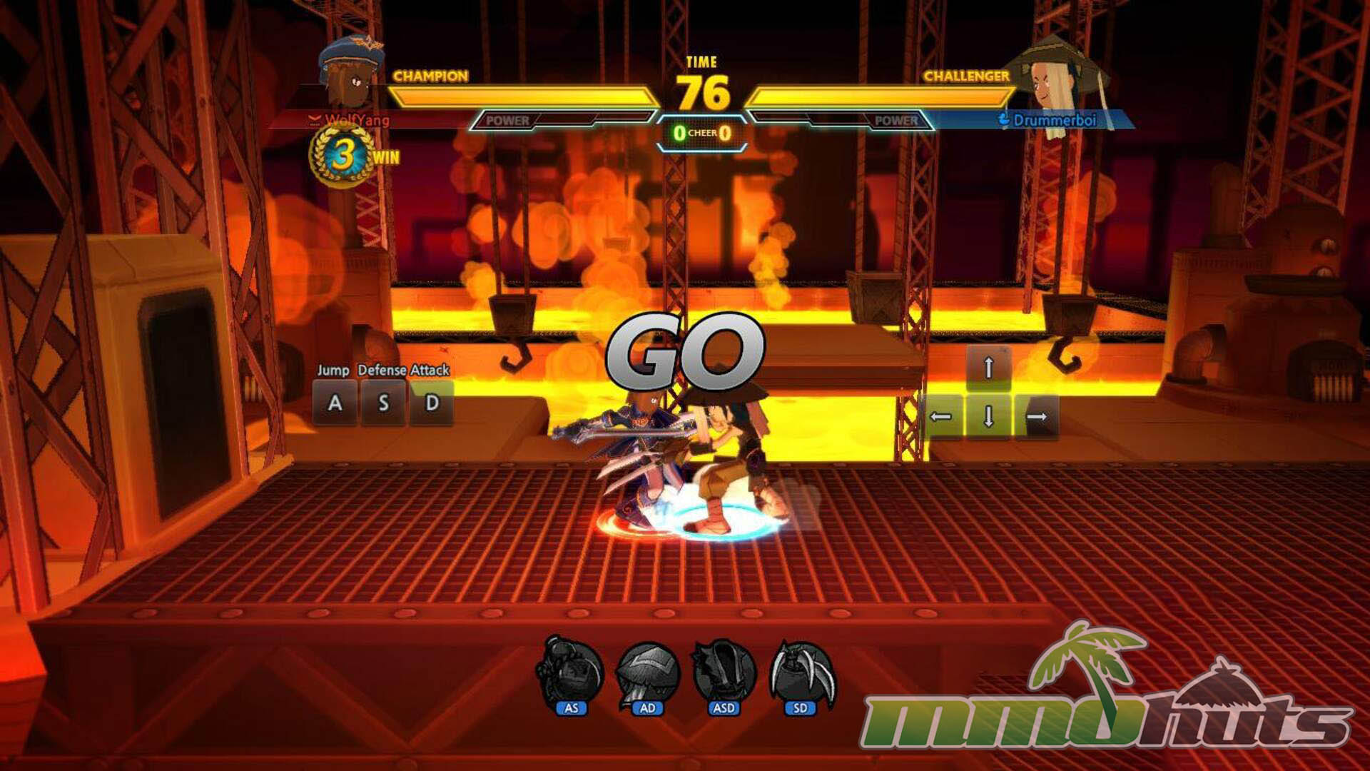 Lost Saga keeps its control scheme straightforward, which helps matches stay quick and readable. Movement is handled with the arrow keys, while A is jump, S is guard, and D is attack. The layout can feel unusual for players used to WASD movement, and it takes some adjustment before the inputs feel natural at full speed.