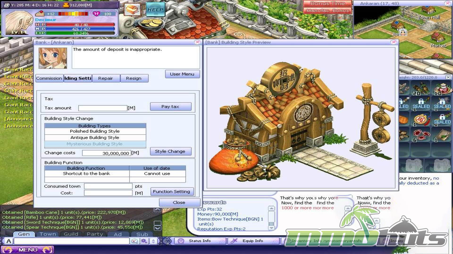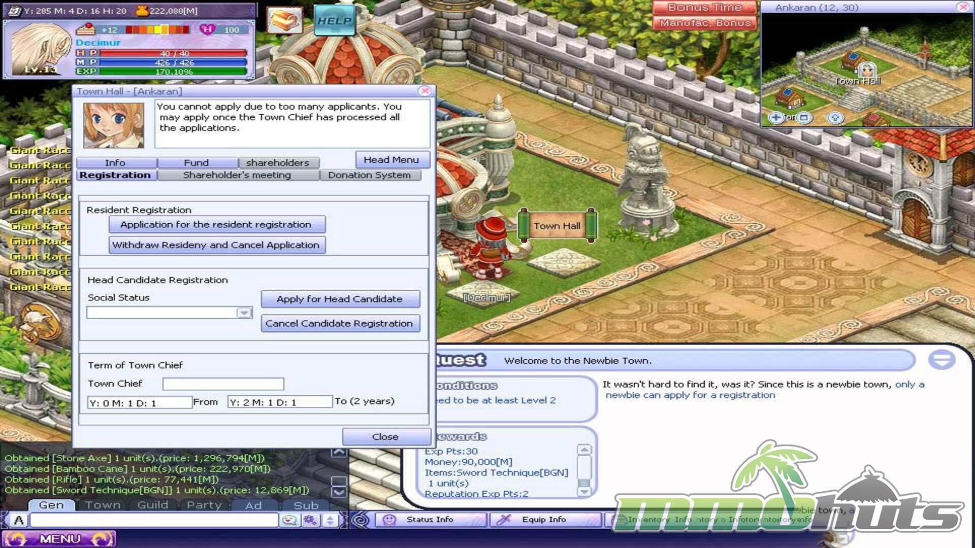 Those crafted goods feed directly into town marketplaces where players buy and sell materials and finished equipment. This is also where the political layer becomes more than flavor. Towns are run by elected leaders tied to shareholding, and those leaders can adjust taxes that affect banking, market use, and other town services. Above the towns sits the GoonZu, a single server-elected ruler with broad authority and the ability to appoint five ministers to assist with administration and moderation-like duties. Moment-to-moment combat is comparatively straightforward and the game includes mounts, but the onboarding can be rough because the translation is not always clear, which can leave new players unsure about what systems they should be using first.