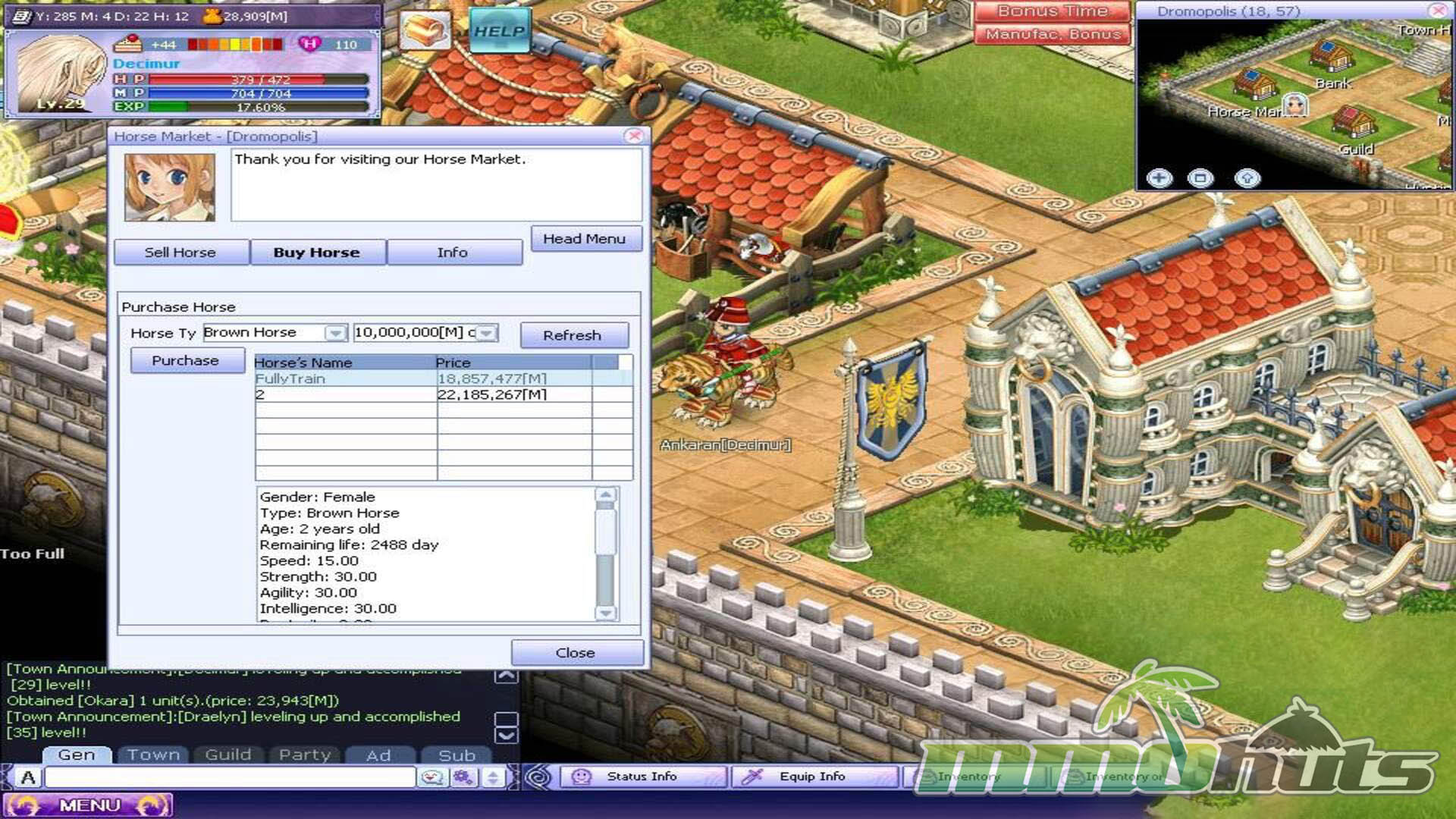 Those crafted goods feed directly into town marketplaces where players buy and sell materials and finished equipment. This is also where the political layer becomes more than flavor. Towns are run by elected leaders tied to shareholding, and those leaders can adjust taxes that affect banking, market use, and other town services. Above the towns sits the GoonZu, a single server-elected ruler with broad authority and the ability to appoint five ministers to assist with administration and moderation-like duties. Moment-to-moment combat is comparatively straightforward and the game includes mounts, but the onboarding can be rough because the translation is not always clear, which can leave new players unsure about what systems they should be using first.