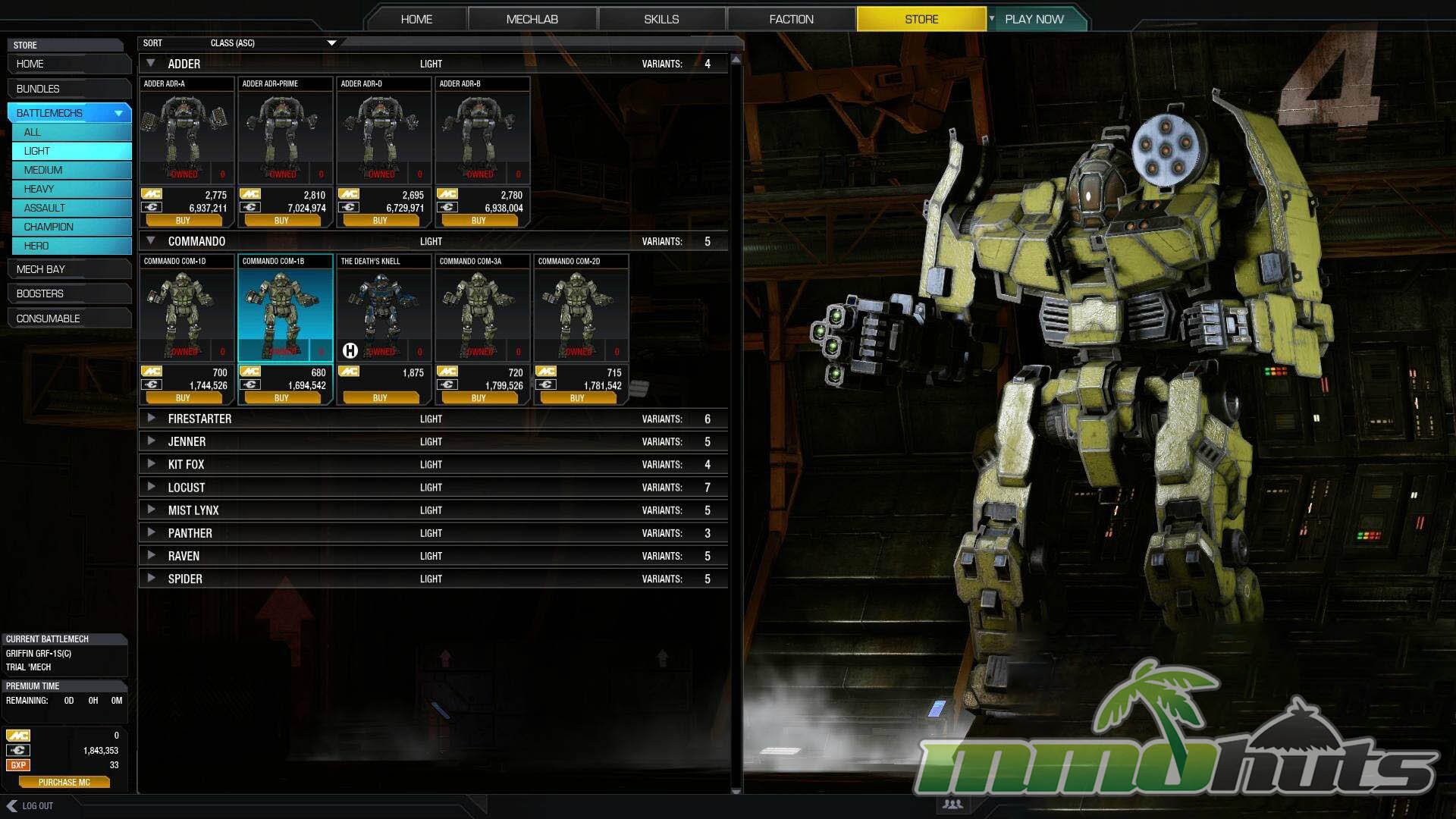 New players start with Trial Mechs, two per weight class: Light, Medium, Heavy, and Assault. Those categories define the role you are likely to play. Lights are fast and evasive, good for scouting and harassment; Assaults are slower but built to soak damage and anchor a line. The middle classes fill in flexible roles, depending on loadout.