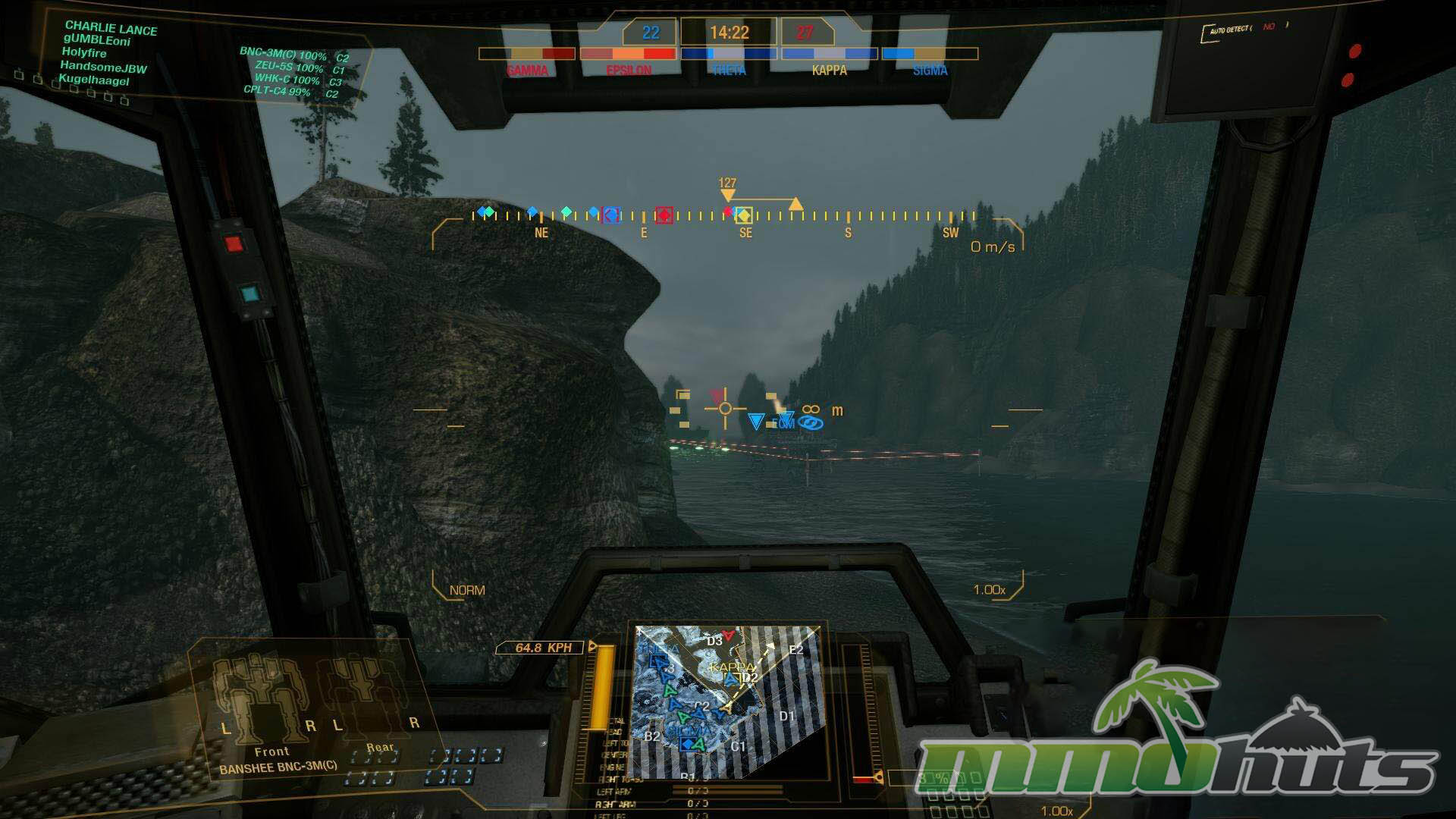MechWarrior Online offers both third-person and cockpit perspectives, and while the external camera can be useful for awareness, the cockpit view is clearly the “main” experience. Each match begins with a satisfying boot-up sequence and a dense HUD that sells the fantasy of operating a complex machine. It is not just a visual flourish; the cockpit framing makes you feel like a pilot managing instruments, not a floating camera with guns.